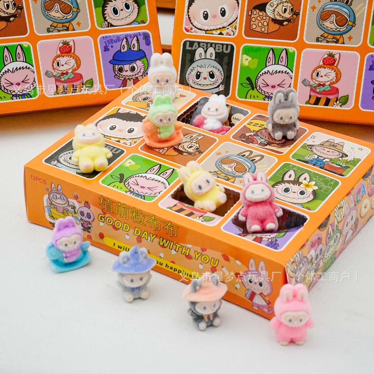 新款植绒公仔多款颜色混发卡通萌粒树脂摆件diy饰品车载配件批发