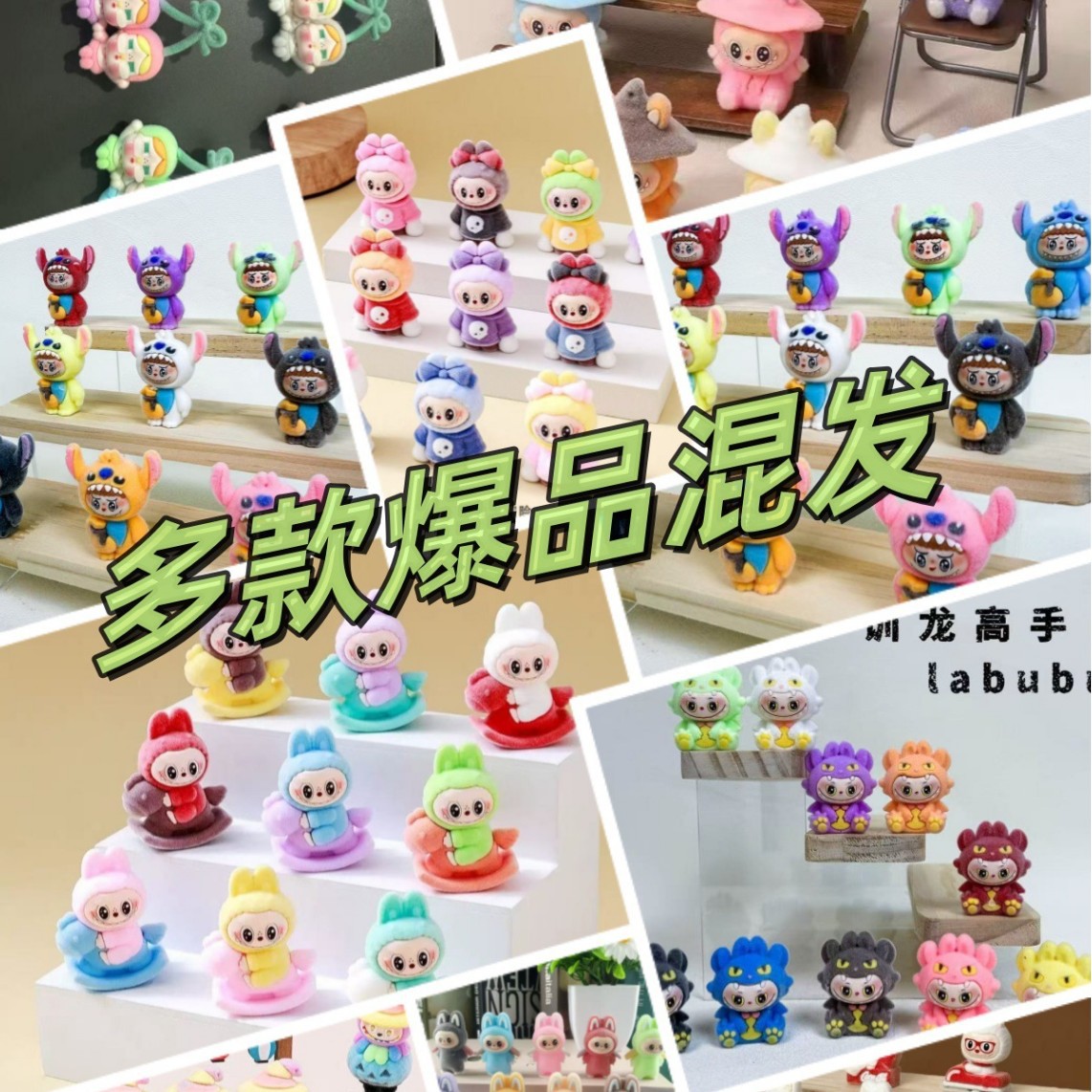 新款坐姿驯龙高手布布labubu植绒萌粒公仔饰品摆件装饰桌面可diy