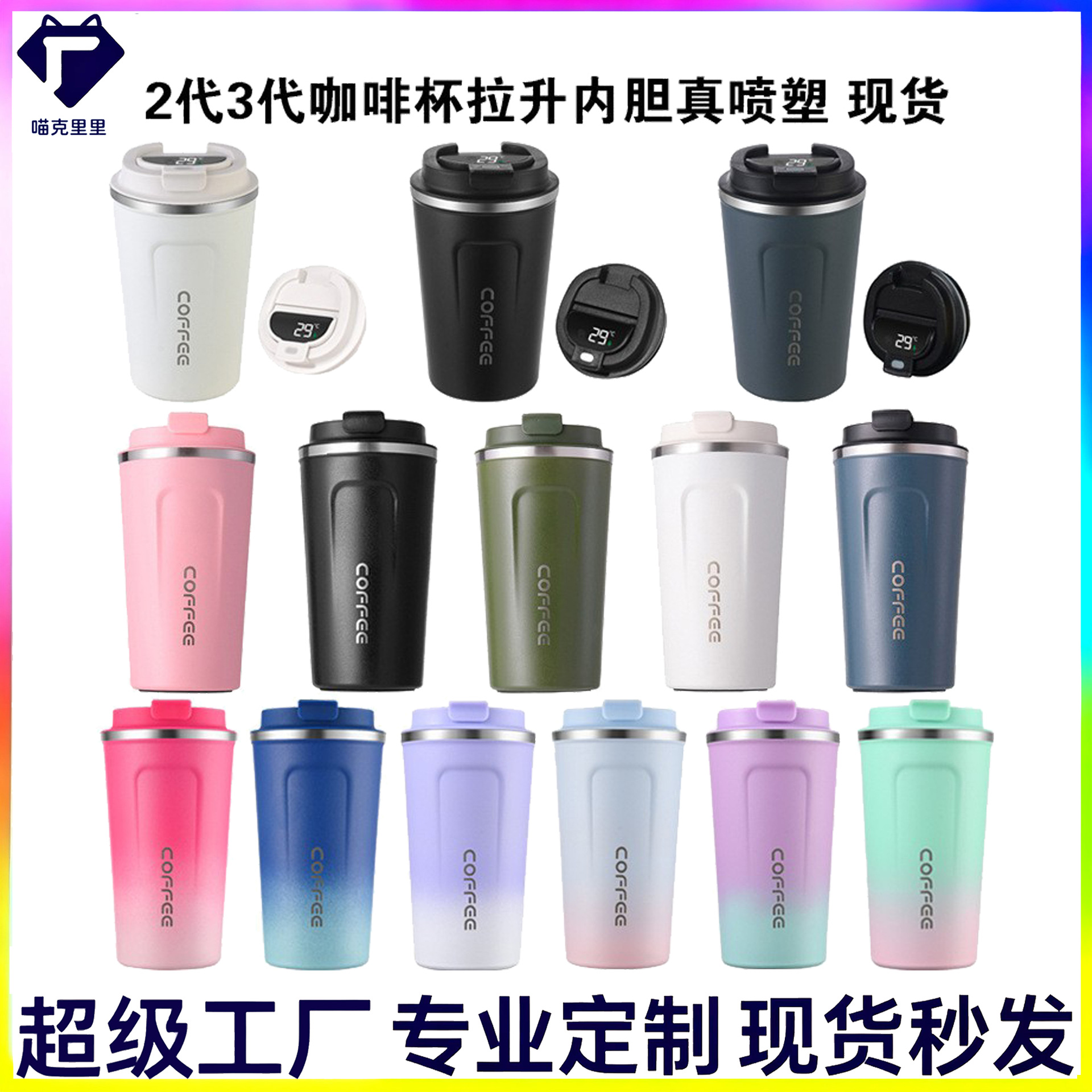 新款德国不锈钢真空2代咖啡杯时尚3代保温杯创意车载杯印图案现货