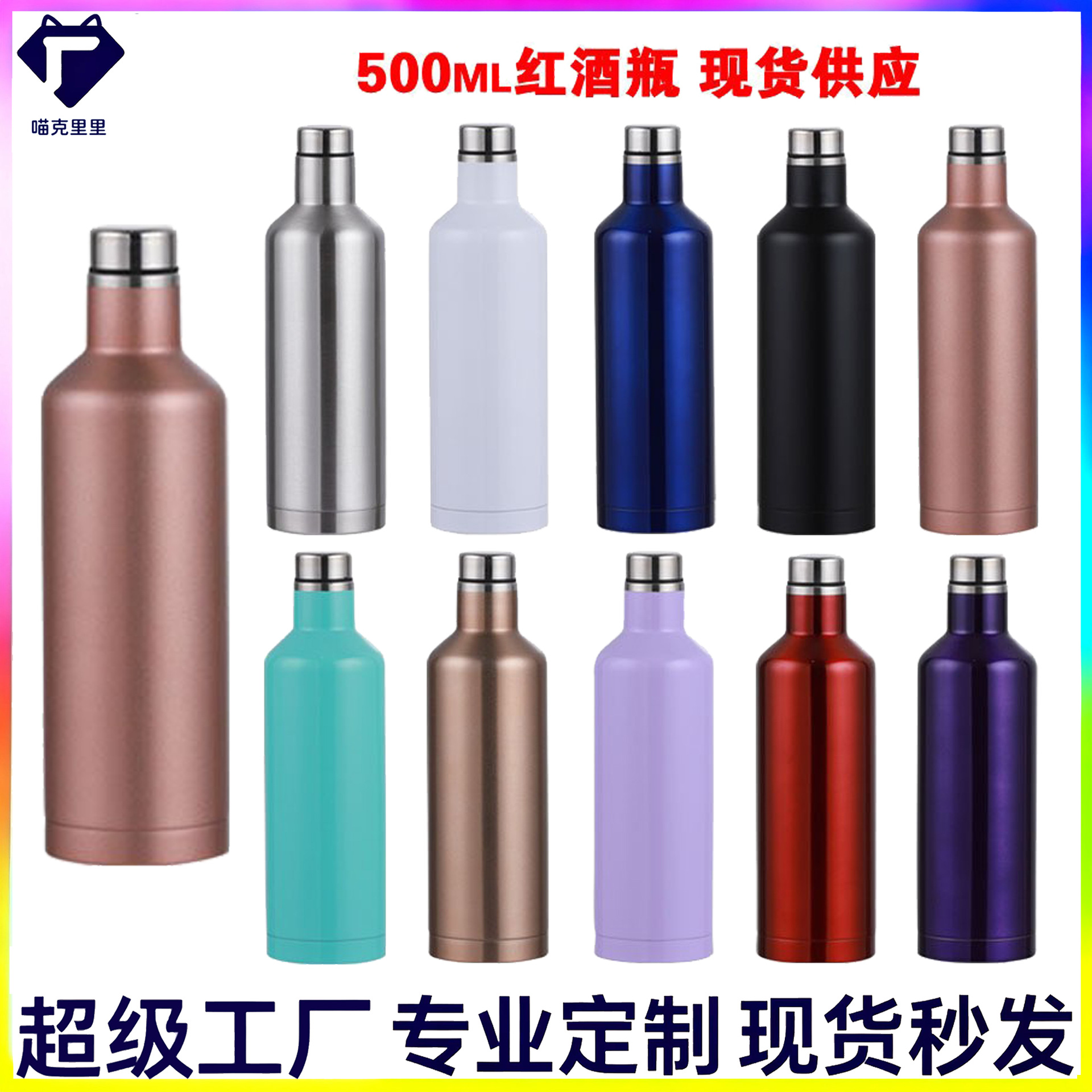 现货500ml红酒瓶保温杯304不锈钢户外运动水壶欧美冰霸啤酒杯印图