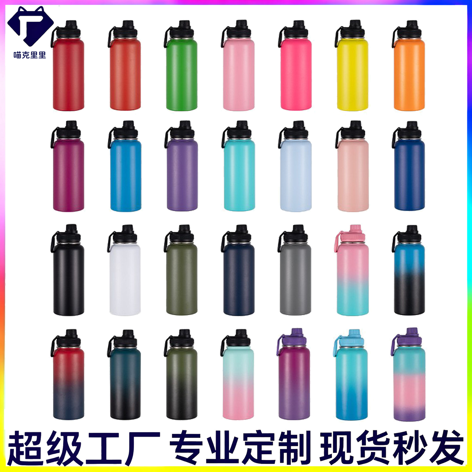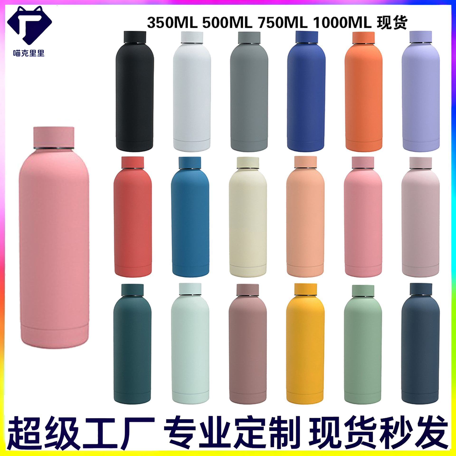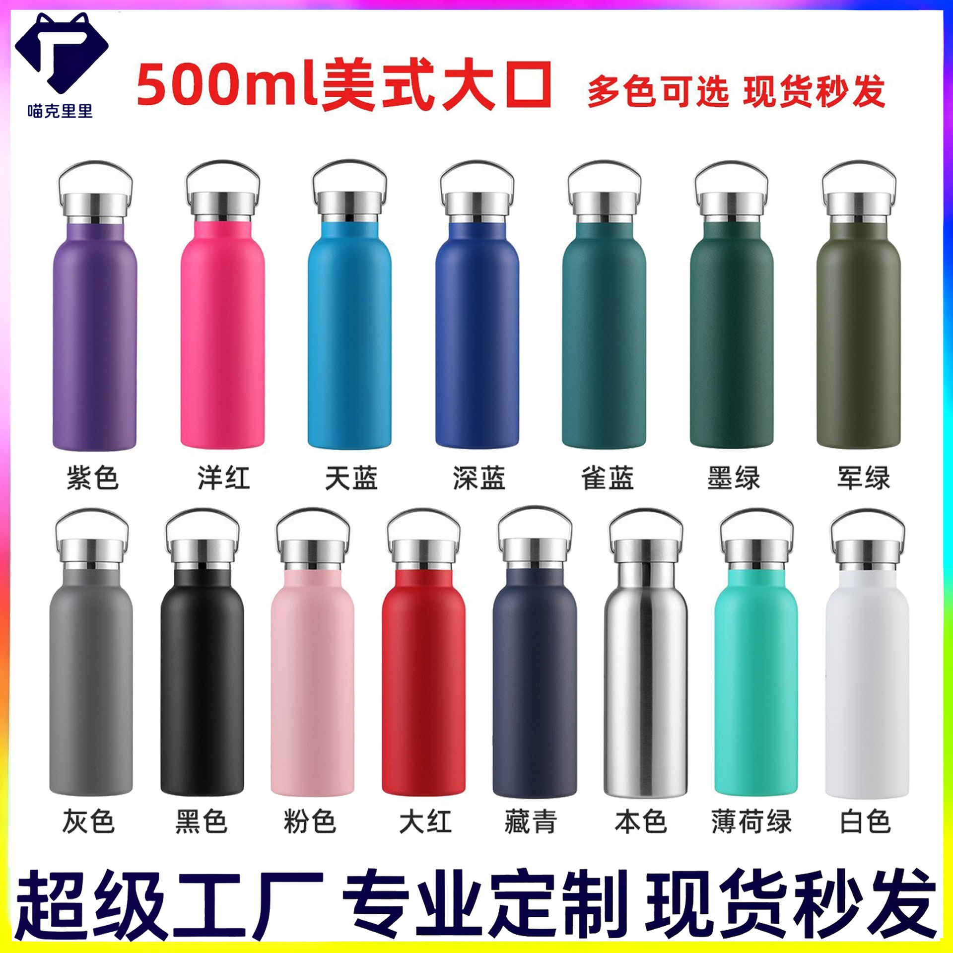 现货304不锈钢美式小口瓶橡胶漆双层保温杯户外车载运动水杯印图