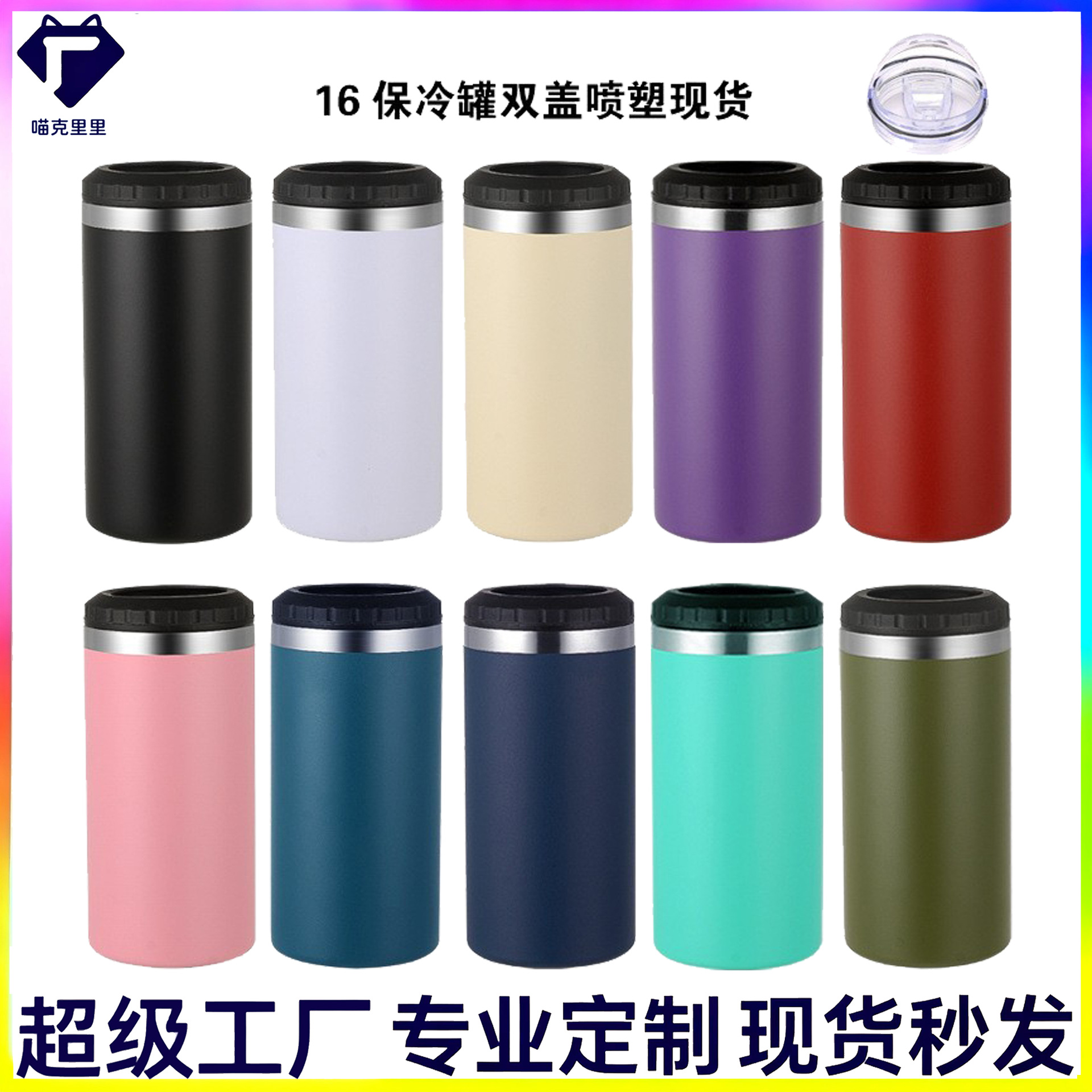 16oz保冷罐双盖现货多功能保温杯简约车载直杯热升华啤酒杯印图案