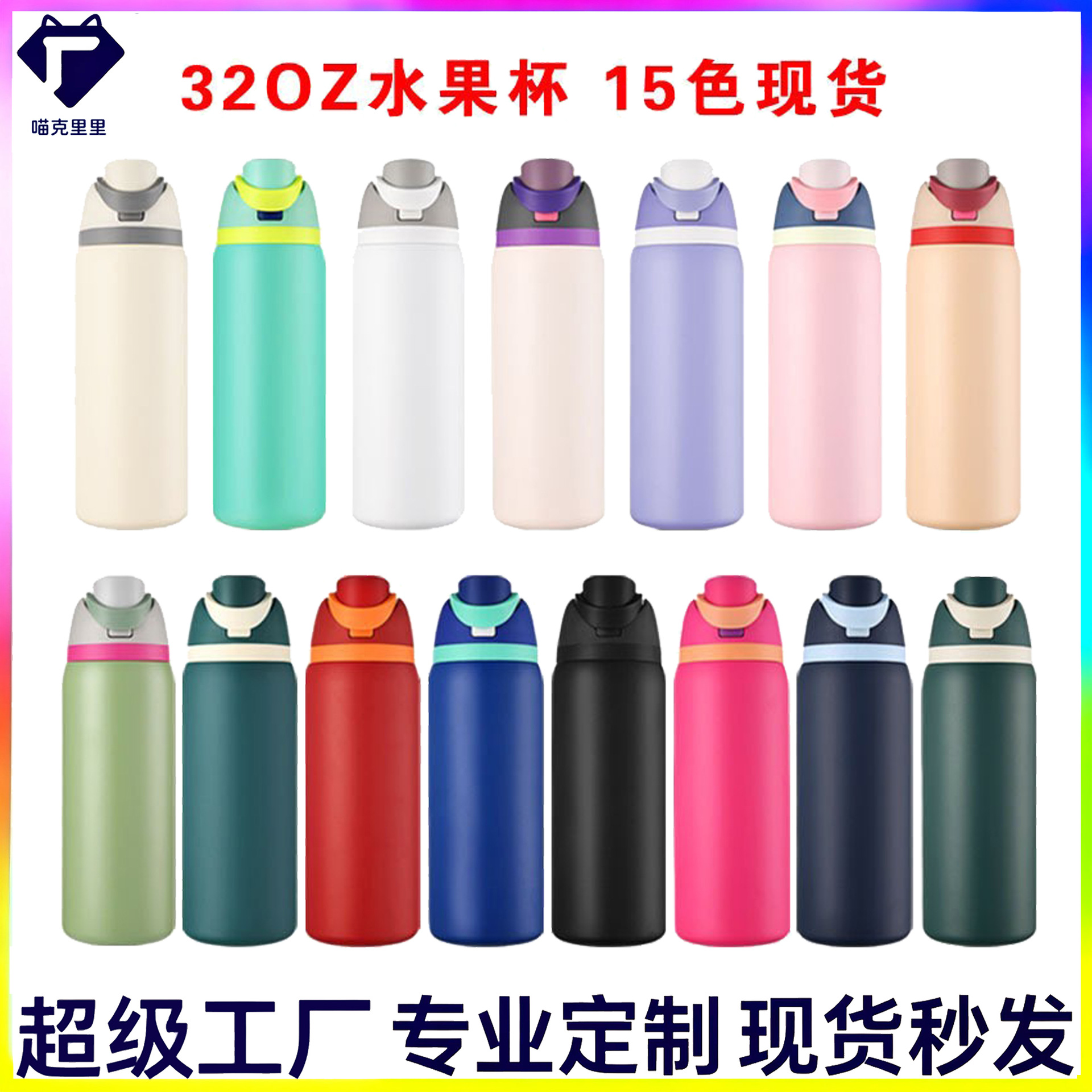 现货供应手提水果杯30oz大容量双饮运动水壶304不锈钢保温杯印图