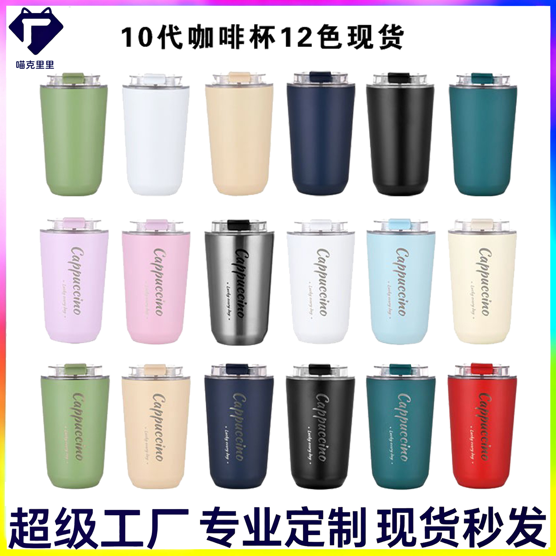 新款跨境304不锈钢10代咖啡杯双层真空户外便携车载随行水杯印图