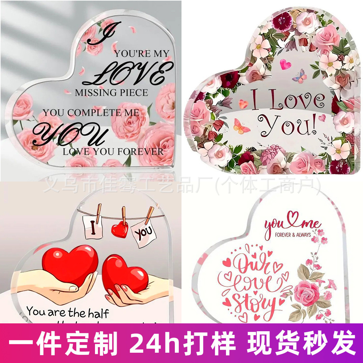 新款跨境全套情人节母亲节立牌爱心透明亚克力桌装饰品摆件卡通