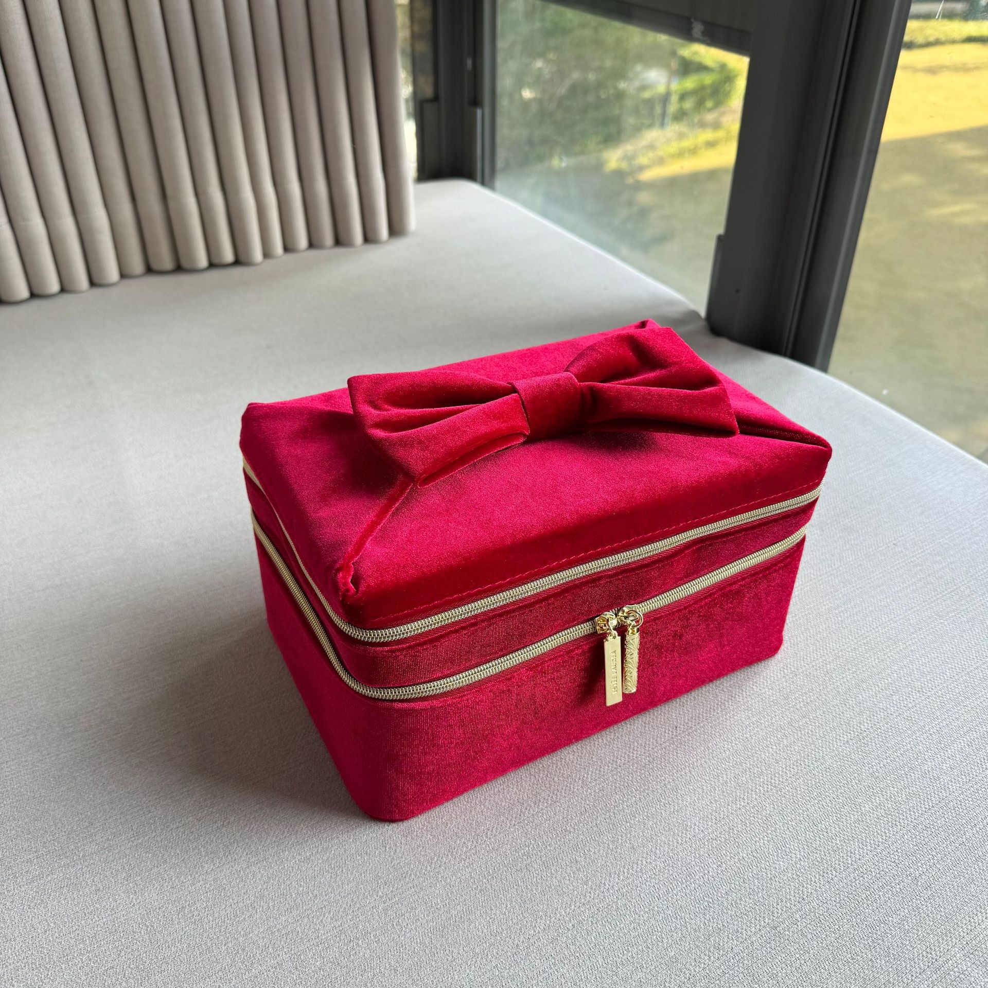 外贸出口原单 EL红色蝴蝶结化妆箱 旅行手提收纳包大容量化妆包