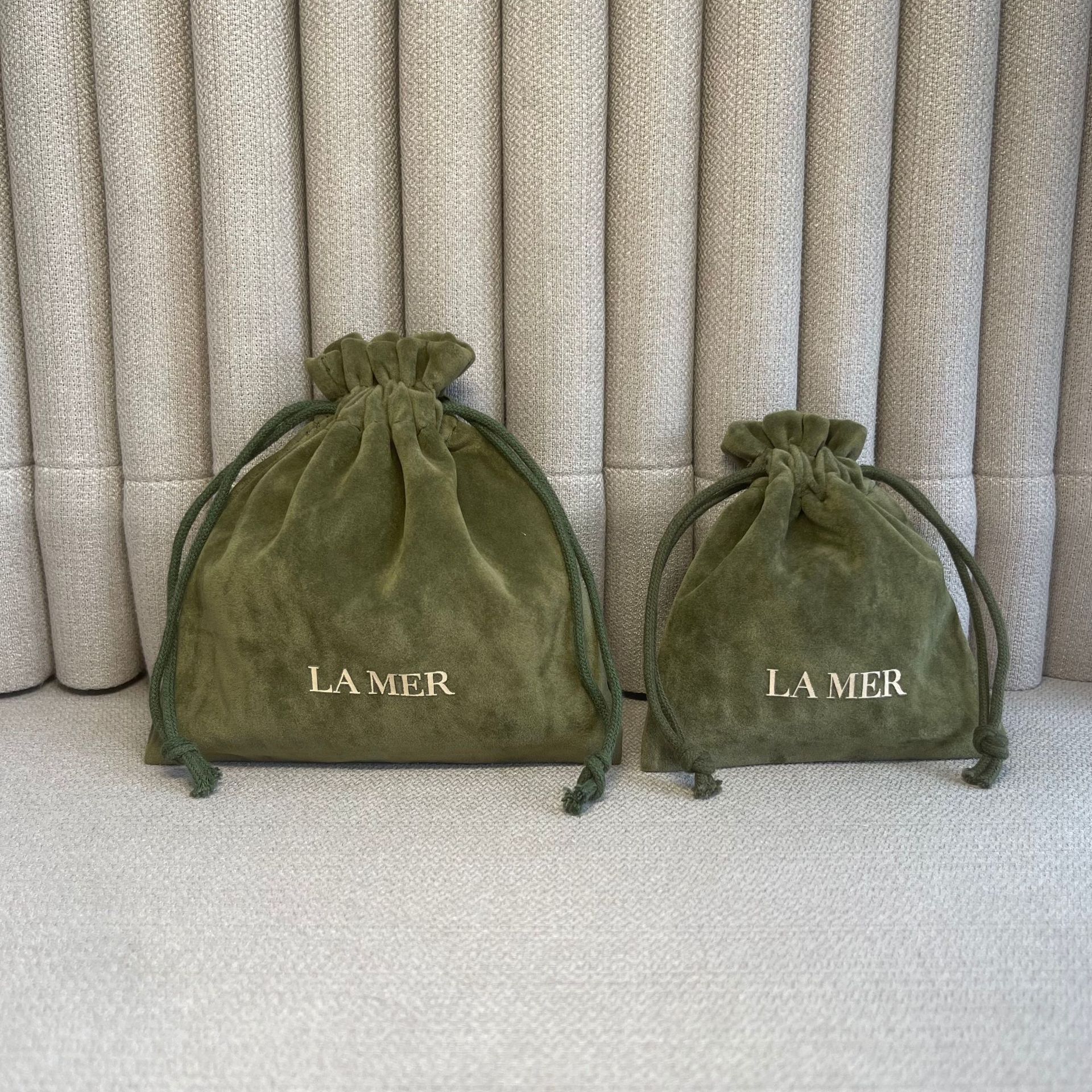外贸原单 LA M绿色丝绒抽绳袋 轻奢中小号首饰收纳袋 口红化妆包