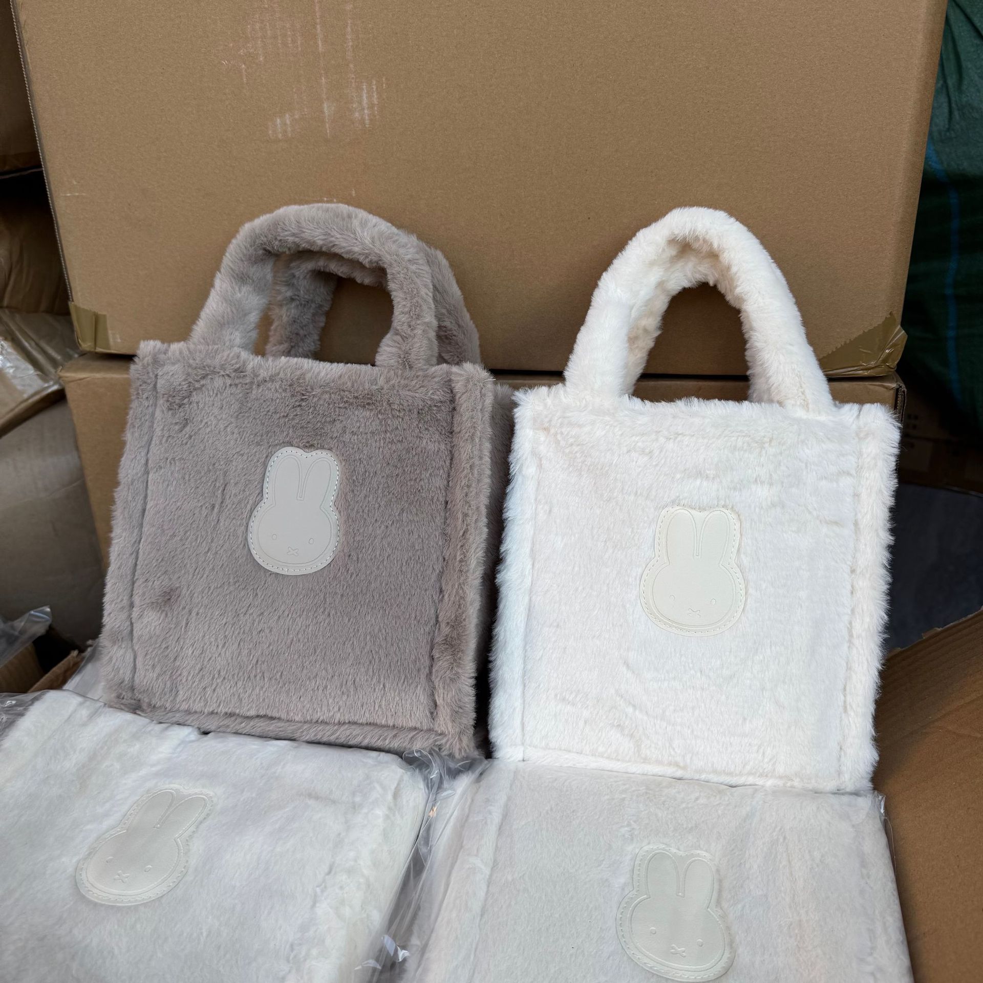 日单新款秋冬卡通毛绒手提托特包通勤百搭手拎包学生补习袋大容量