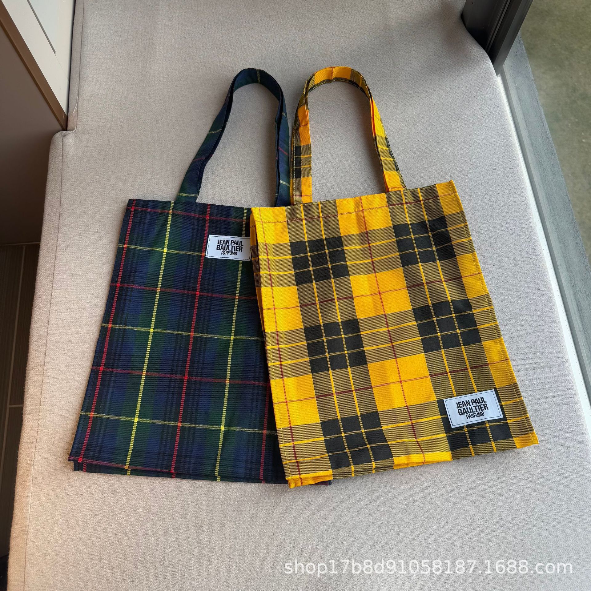 外贸原单 轻奢帆布格子单肩包 百搭手提环保购物袋 托特包