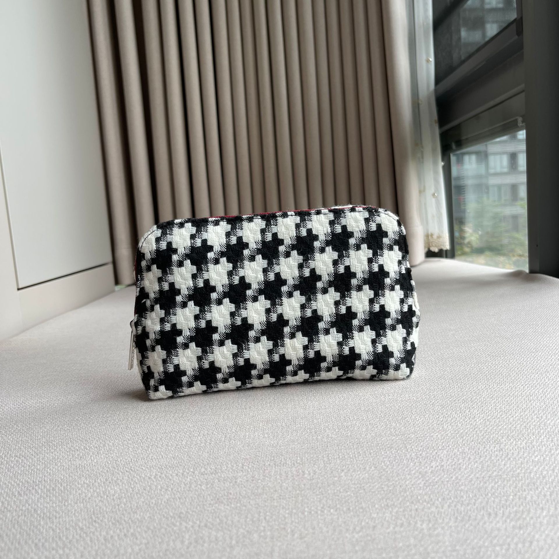 美妆柜台赠品千鸟格化妆包旅行收纳包洗漱包大容量便携整理包欧美
