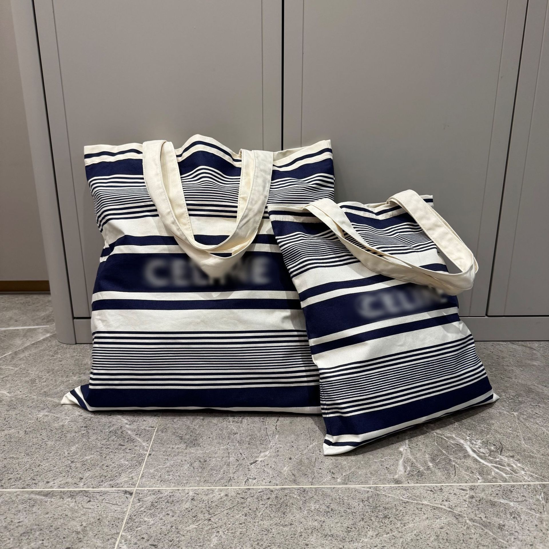 快闪店限定款 兰白条纹帆布袋 户外度假手提单肩包 大小号购物袋
