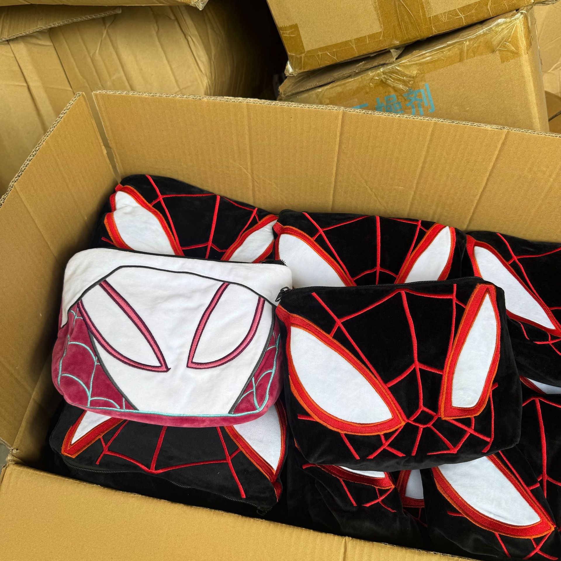 卡通毛绒儿童收纳包零钱包玩具包蜘蛛侠图案可爱化妆包超厚夹棉双