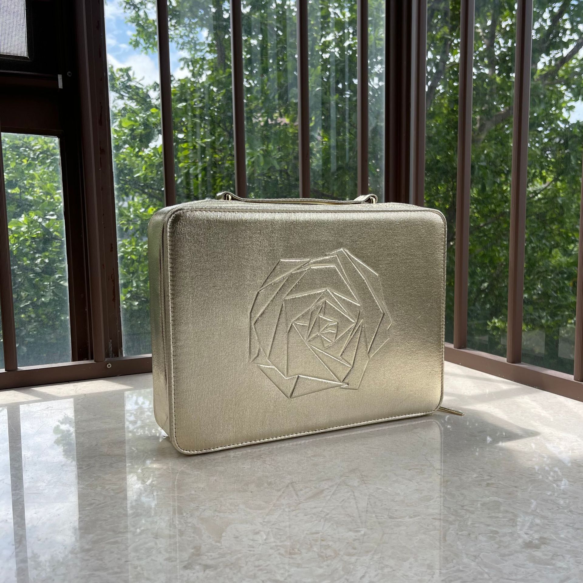 专柜原单新款 金黄色化妆盒 轻奢手提化妆箱 大容量收纳包 整理箱