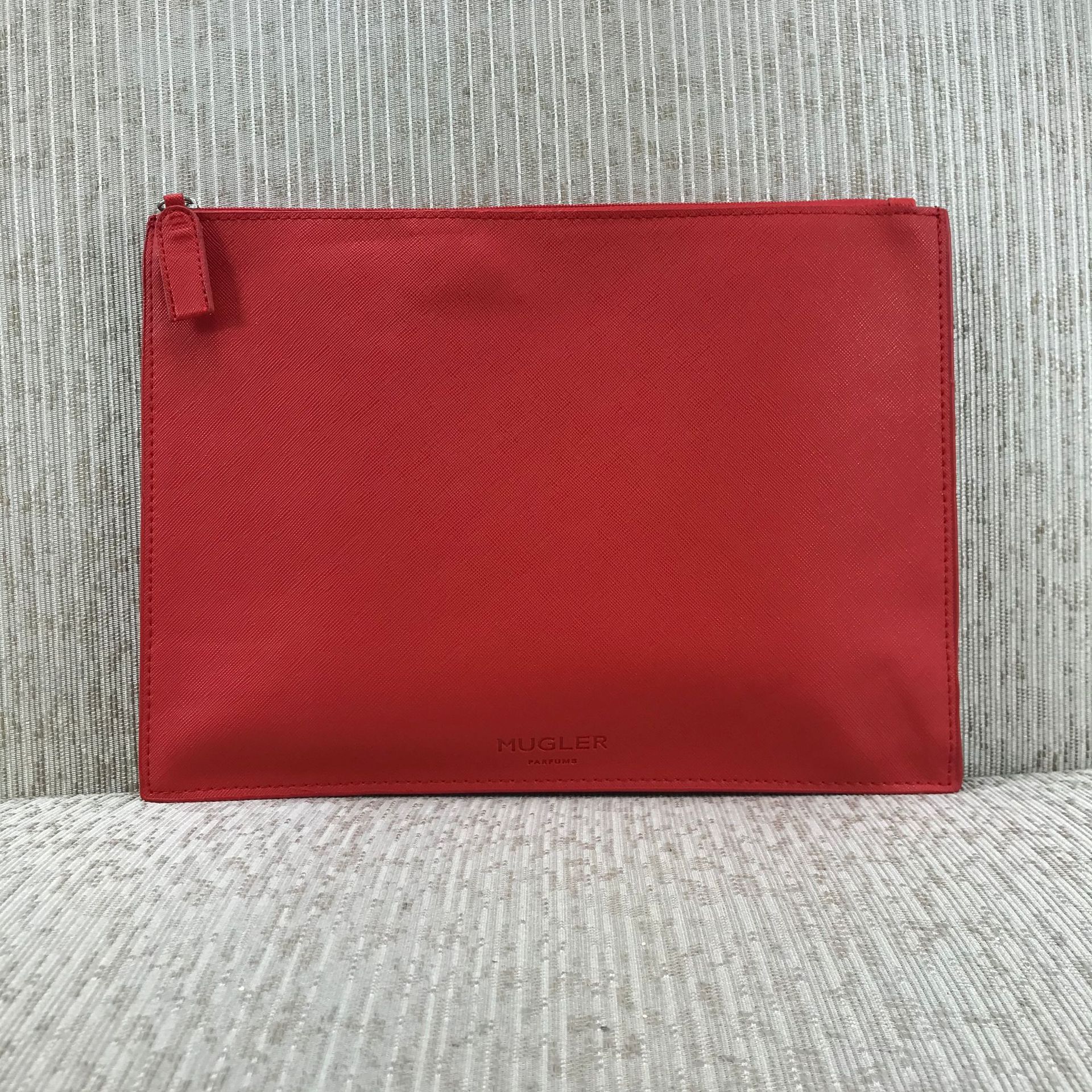 外贸尾单 蒂埃里穆勒红色手拿包 信封包 简约拉链票夹证件包