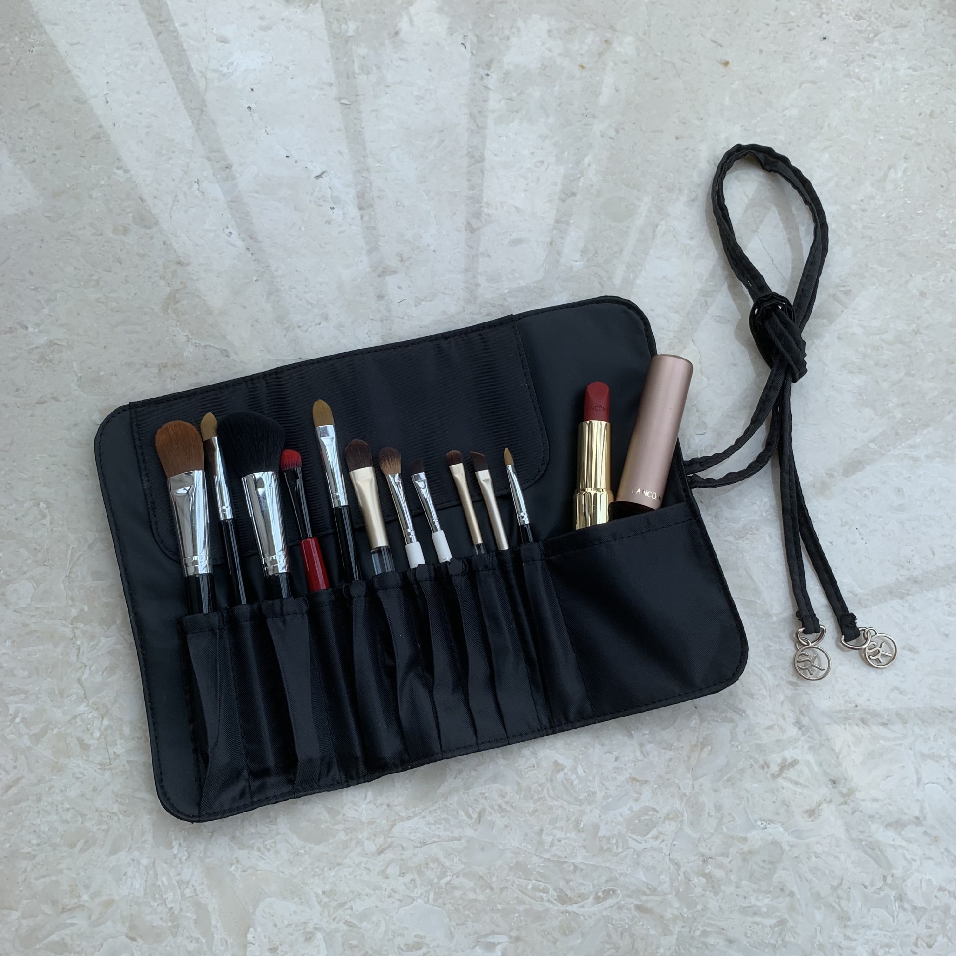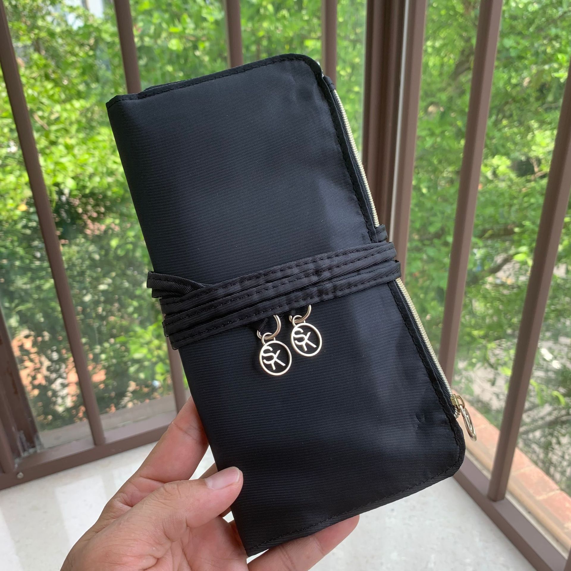 出口外贸 SK尼龙化妆刷收纳包 12孔彩妆工具化妆包 绑带便携式