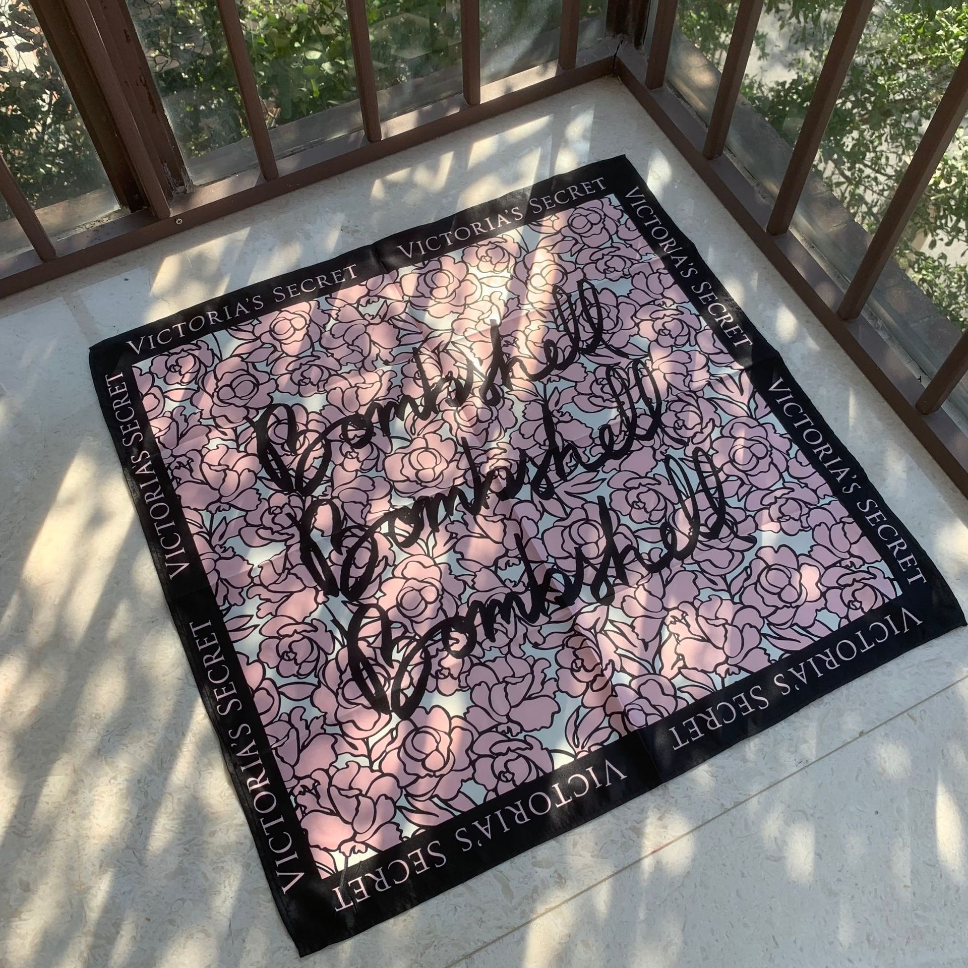 外贸原单 VS性感女郎花卉围巾 短款百搭系带打结护颈围巾