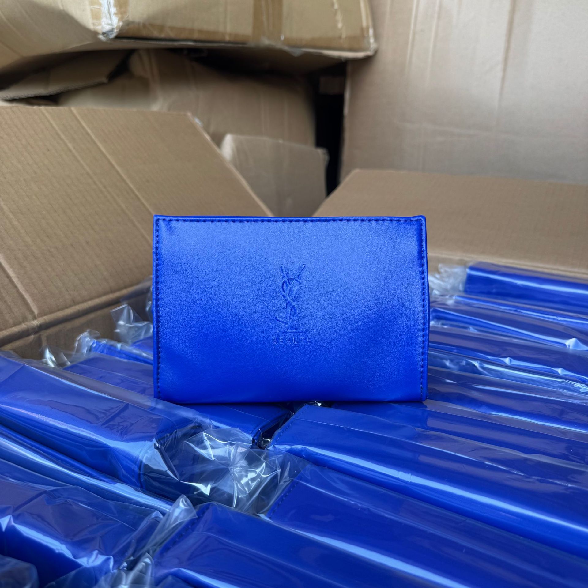 美妆柜台赠品杨树林漆皮PU化妆包电光蓝收纳包多功能洗漱包小方包