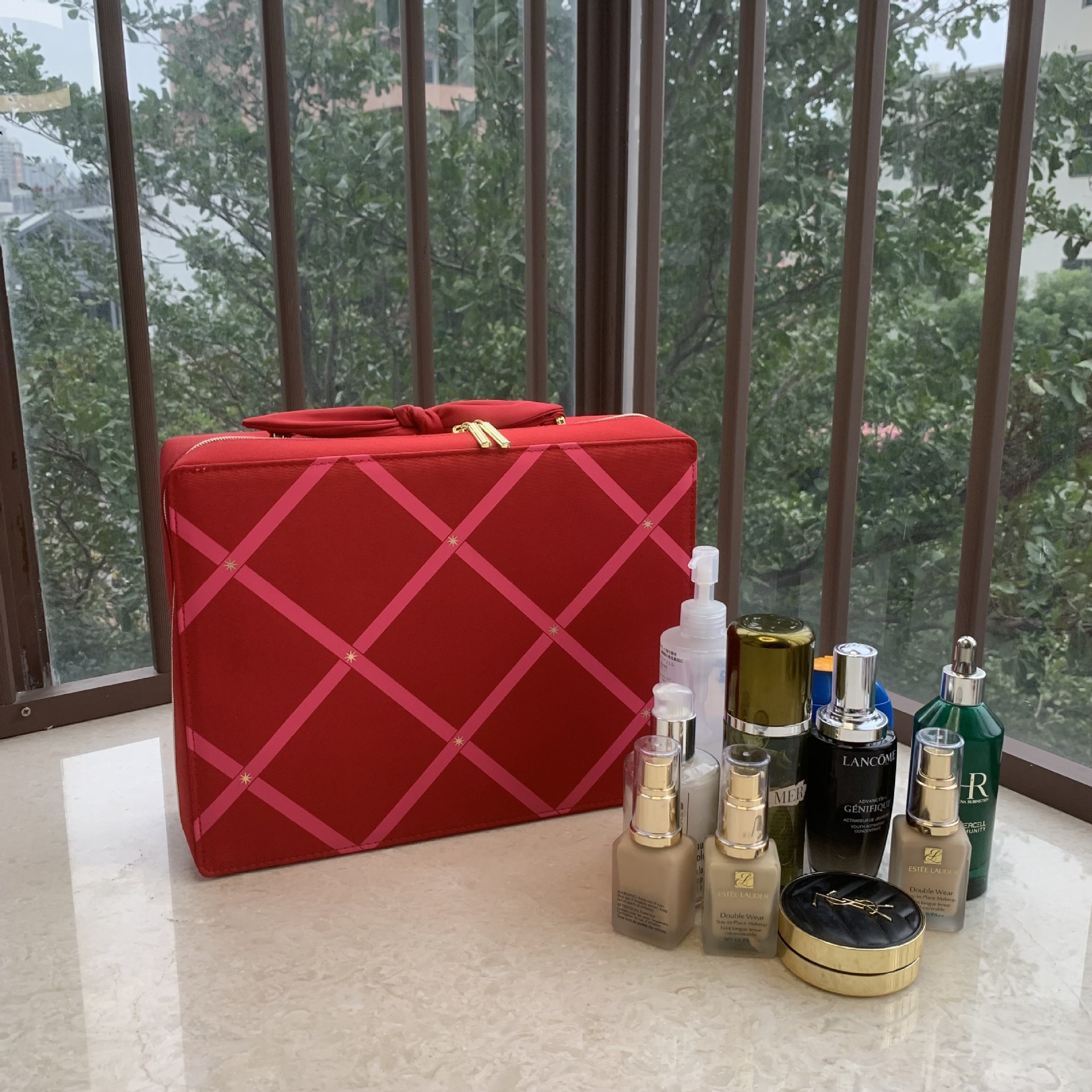 专柜E限量款 红色圣诞礼双层化妆箱 精致蝴蝶结手拿收纳包