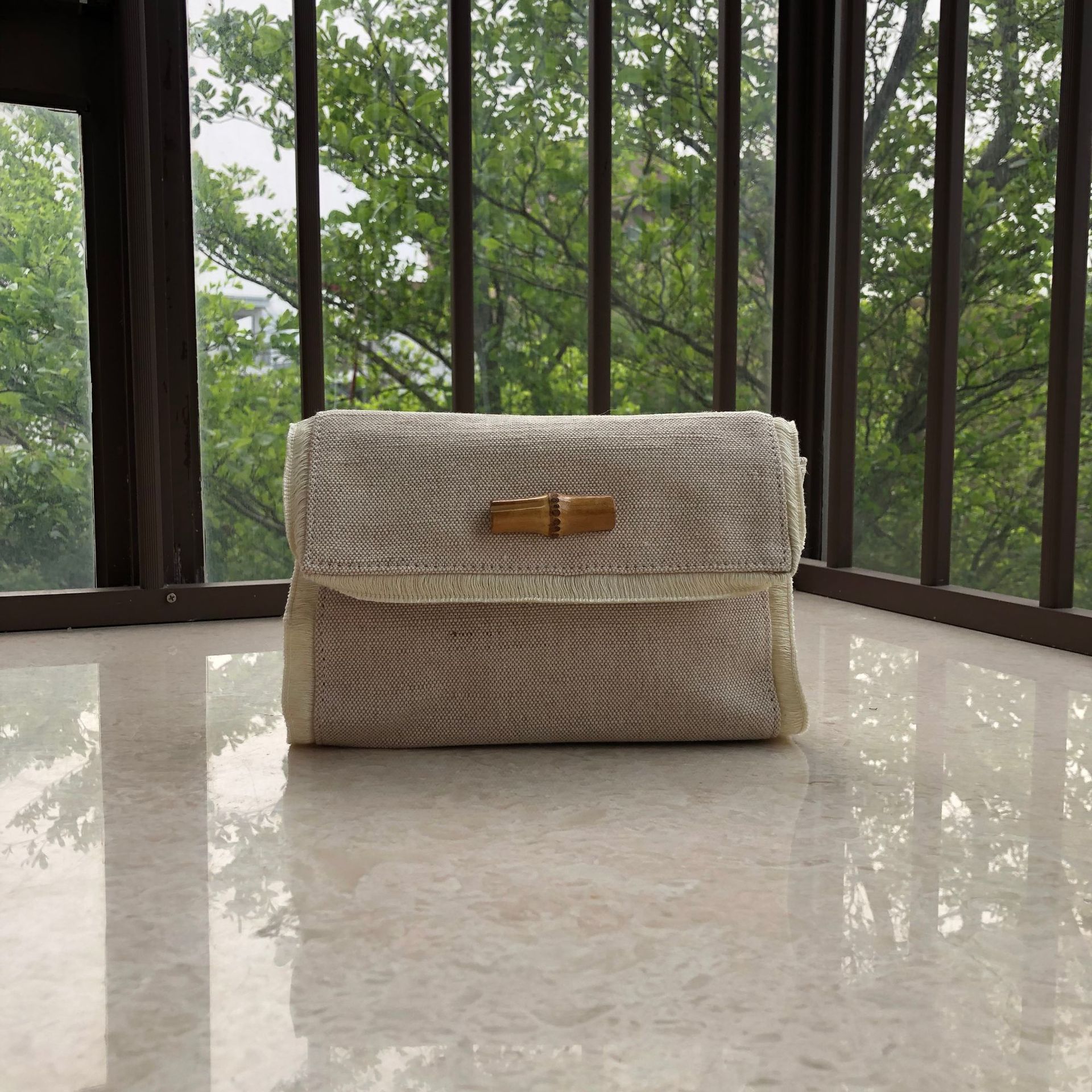 专柜赠品 新款米色流苏化妆包 大容量棉麻手拿收纳包