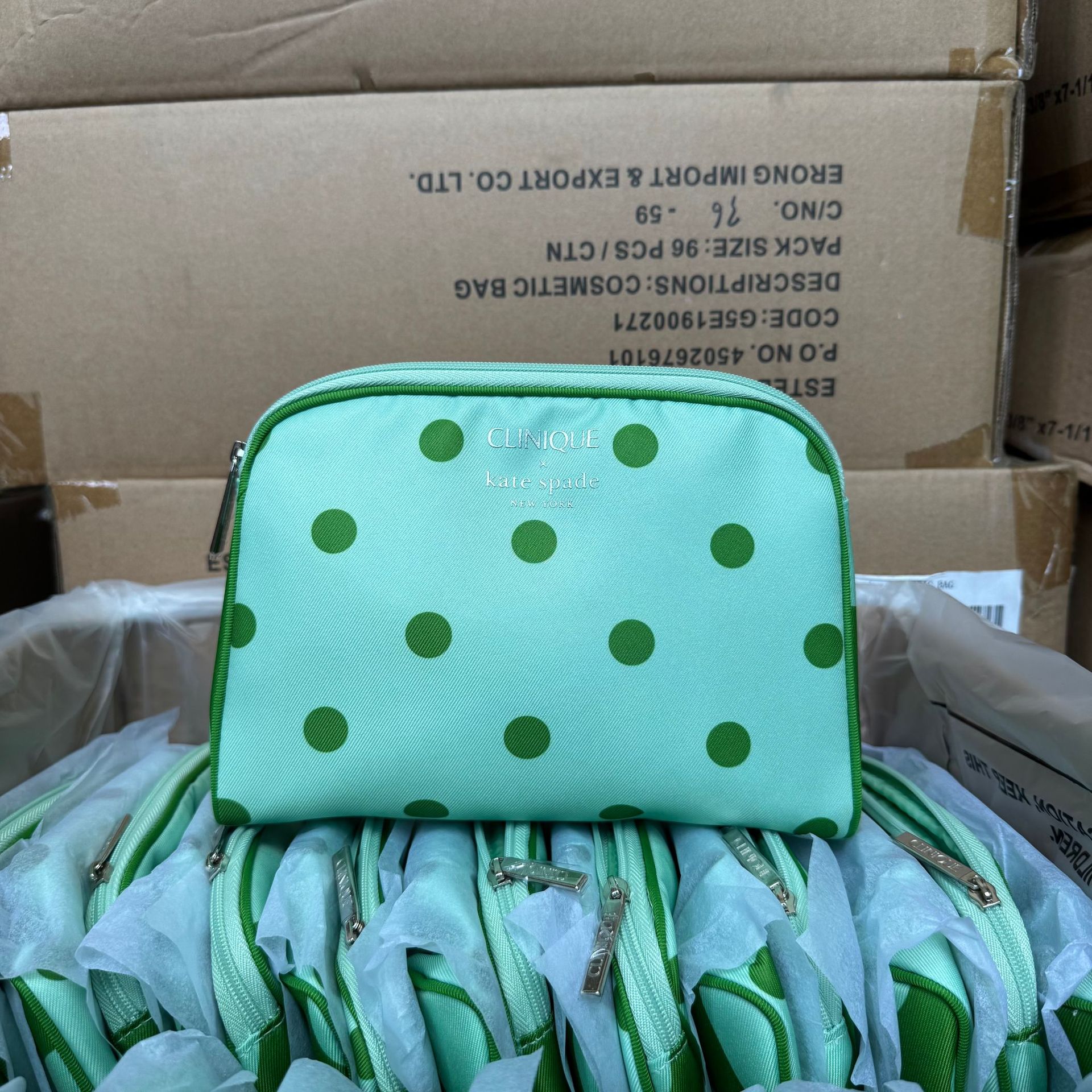 欧美赠品 联名限量绿圆点化妆包 旅行便携收纳包 轻奢款洗漱包