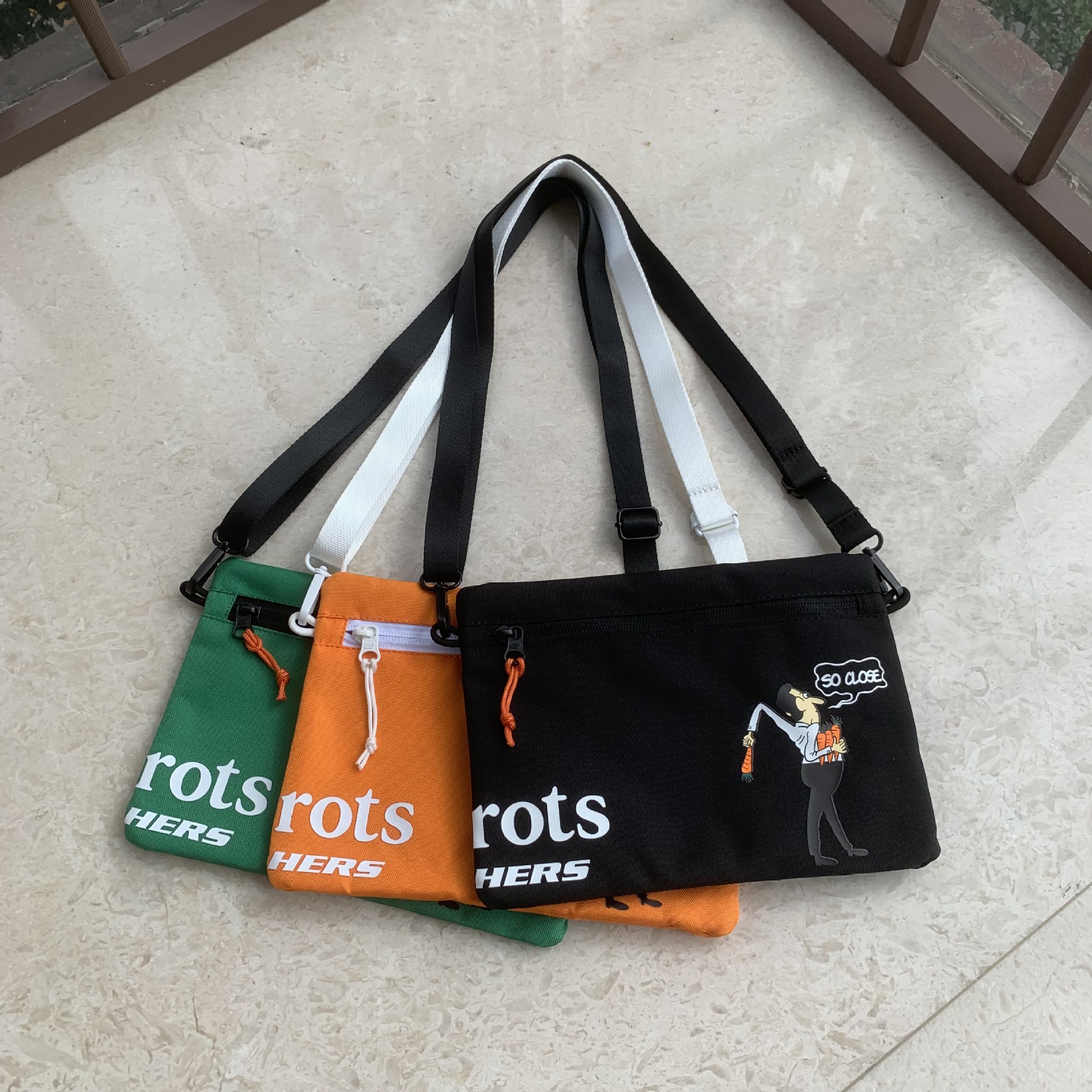 外贸原单 胡萝卜联名款斜挎包 潮牌男女单肩包 休闲轻便防水小包