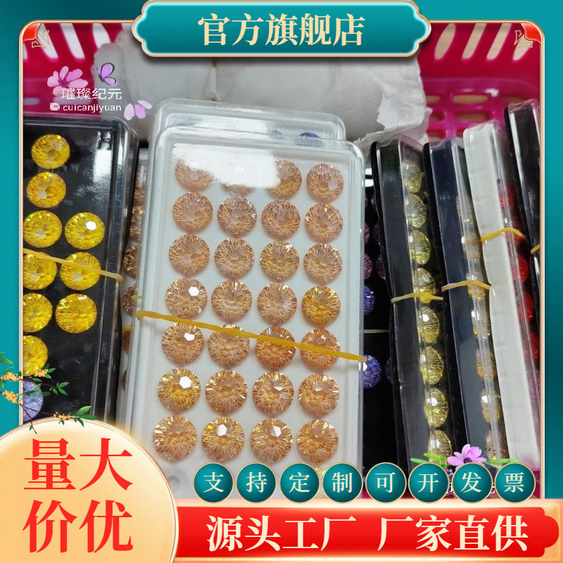 梧州现货锆石圆形菊花切烟花锆彩色宝石裸石饰品主石批发