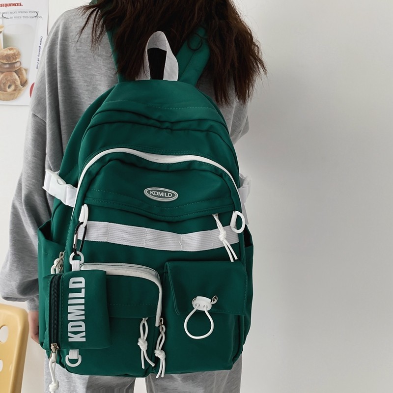 日系工装书包女韩版小众设计感高中大学生大容量双肩包旅行背包男