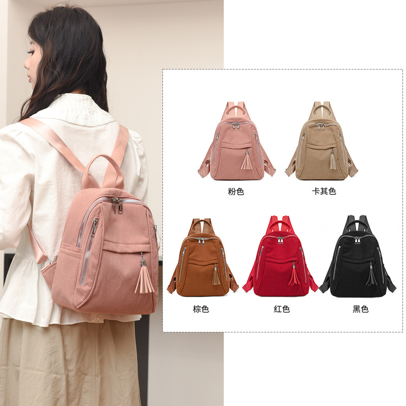 新款双肩包货源大容量灯芯绒女士跨境简约复古休闲旅行背包多功能