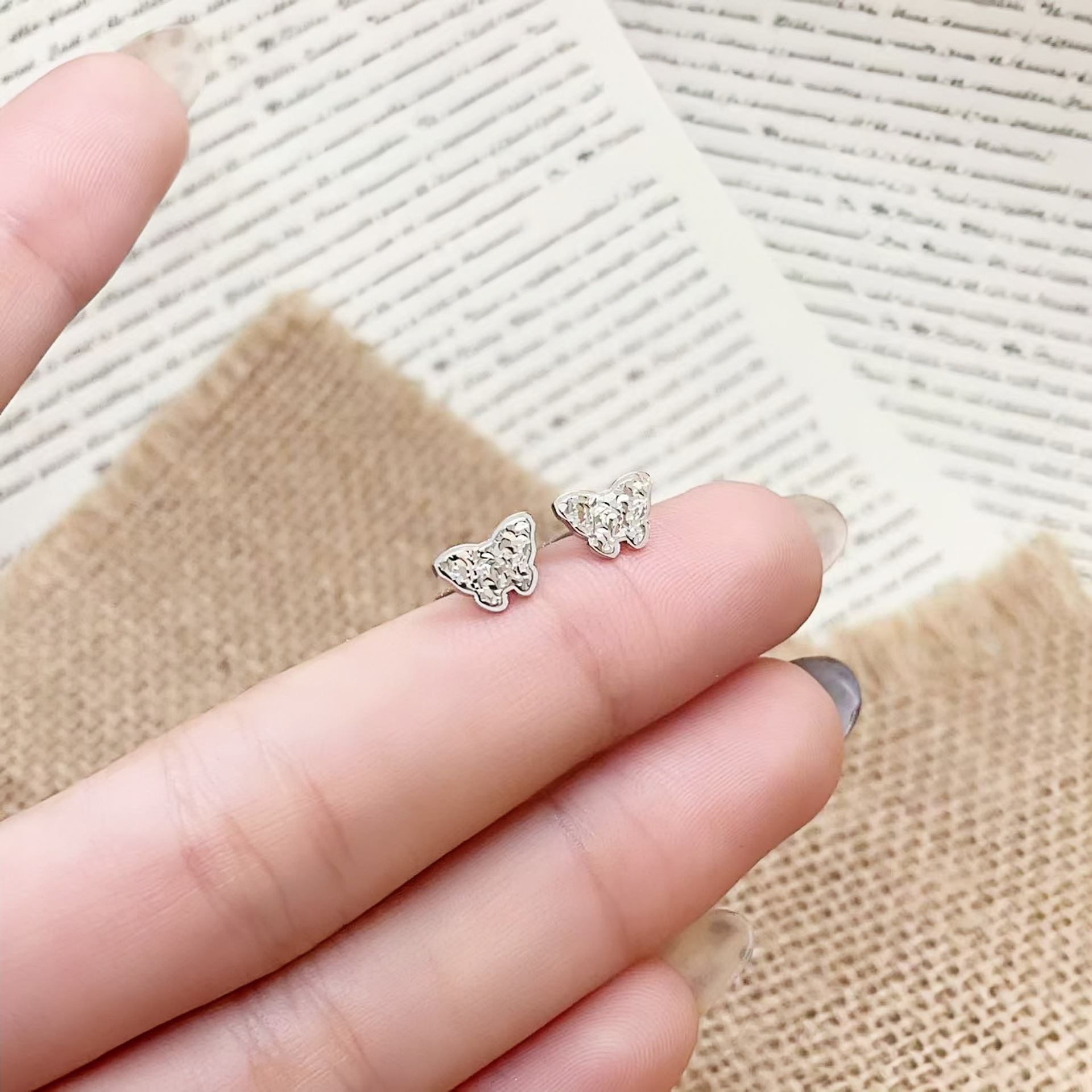 S925纯银碎冰冰蝴蝶形耳钉女个性时尚耳骨钉ins气质耳饰品