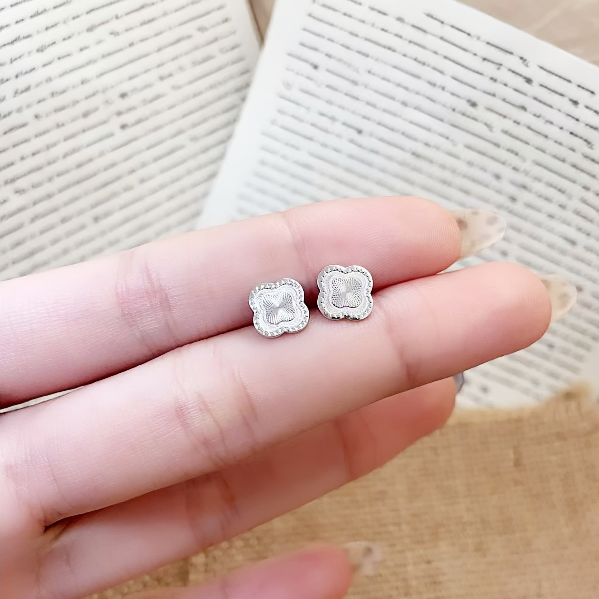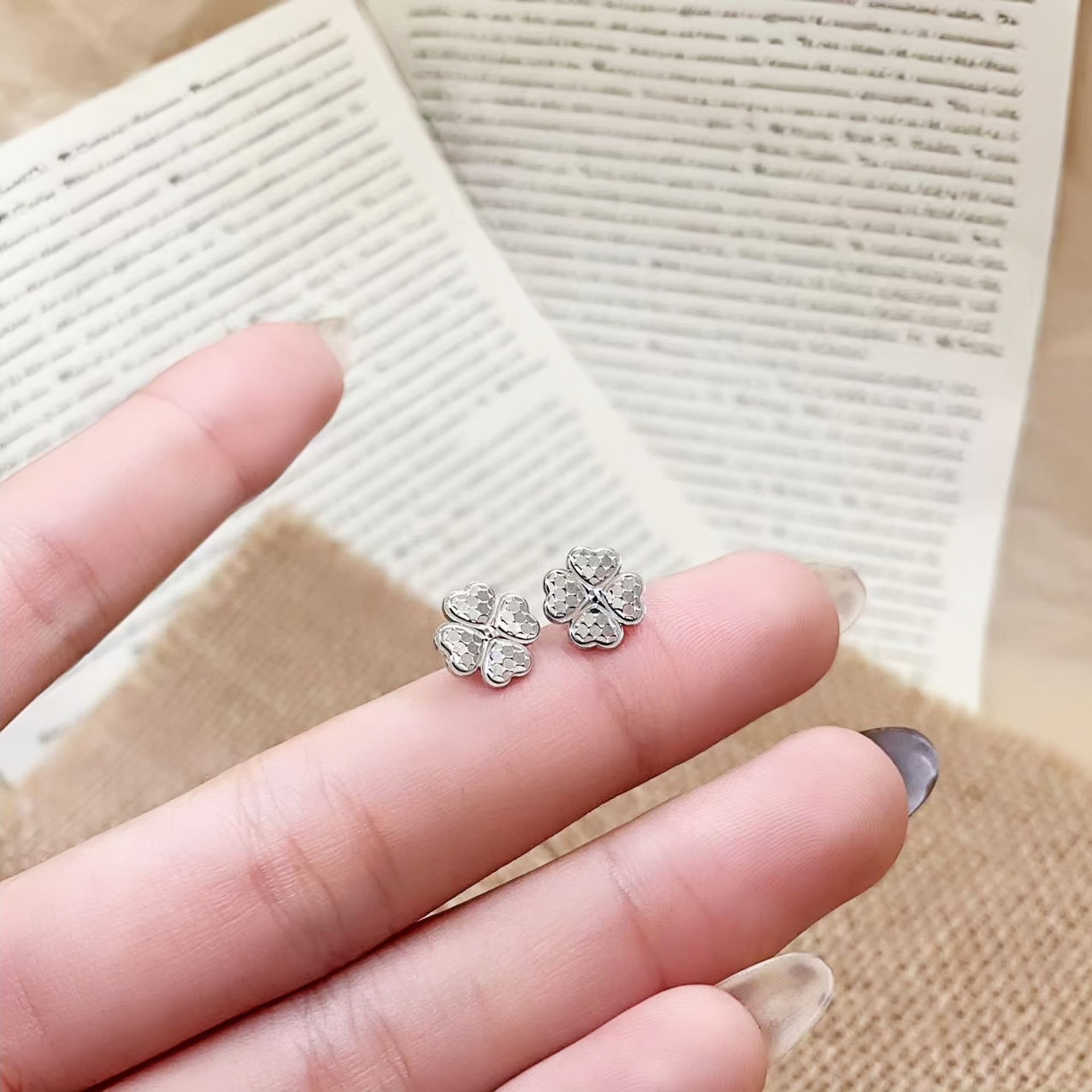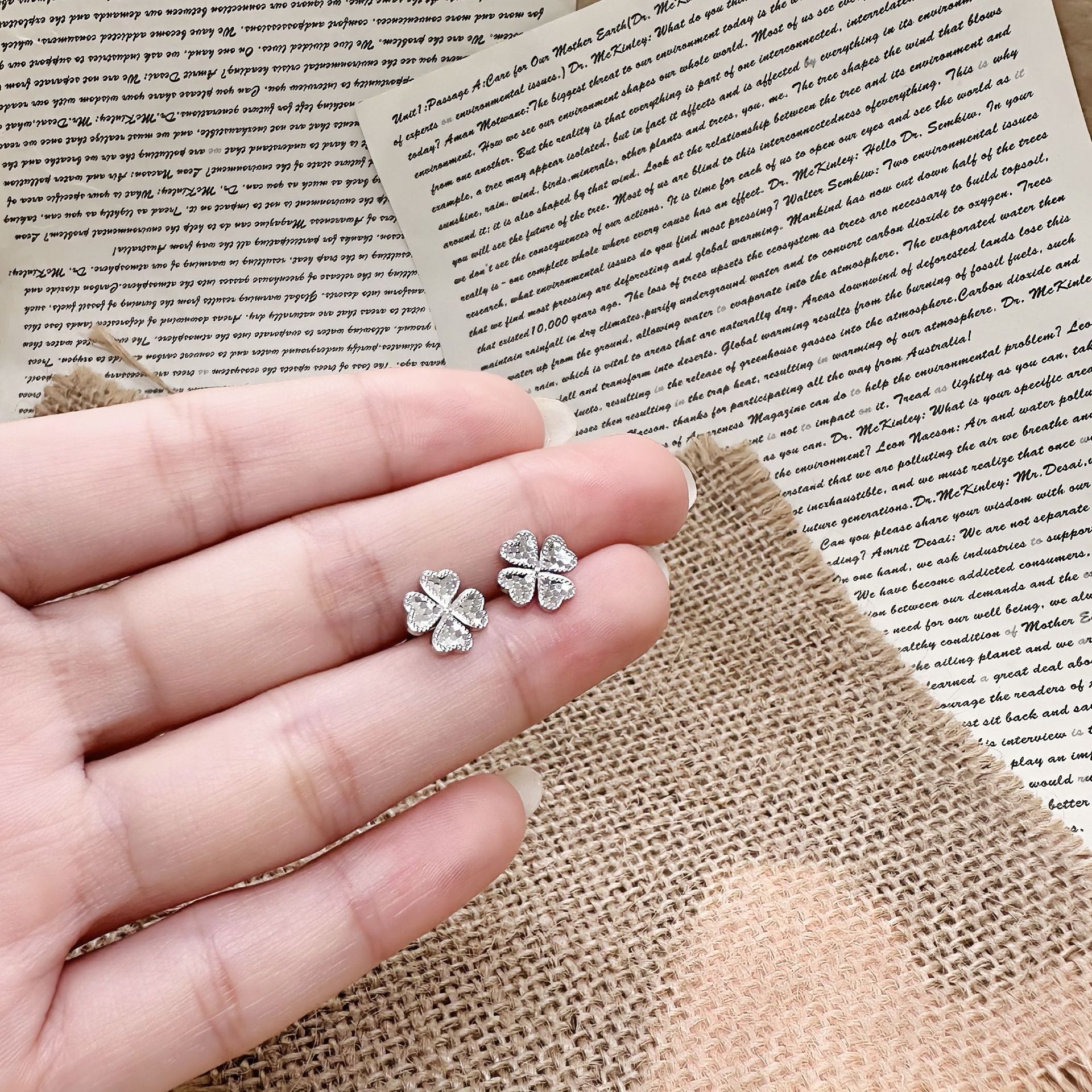 S925纯银碎冰冰四叶草形耳钉女个性时尚耳骨钉ins气质耳饰品