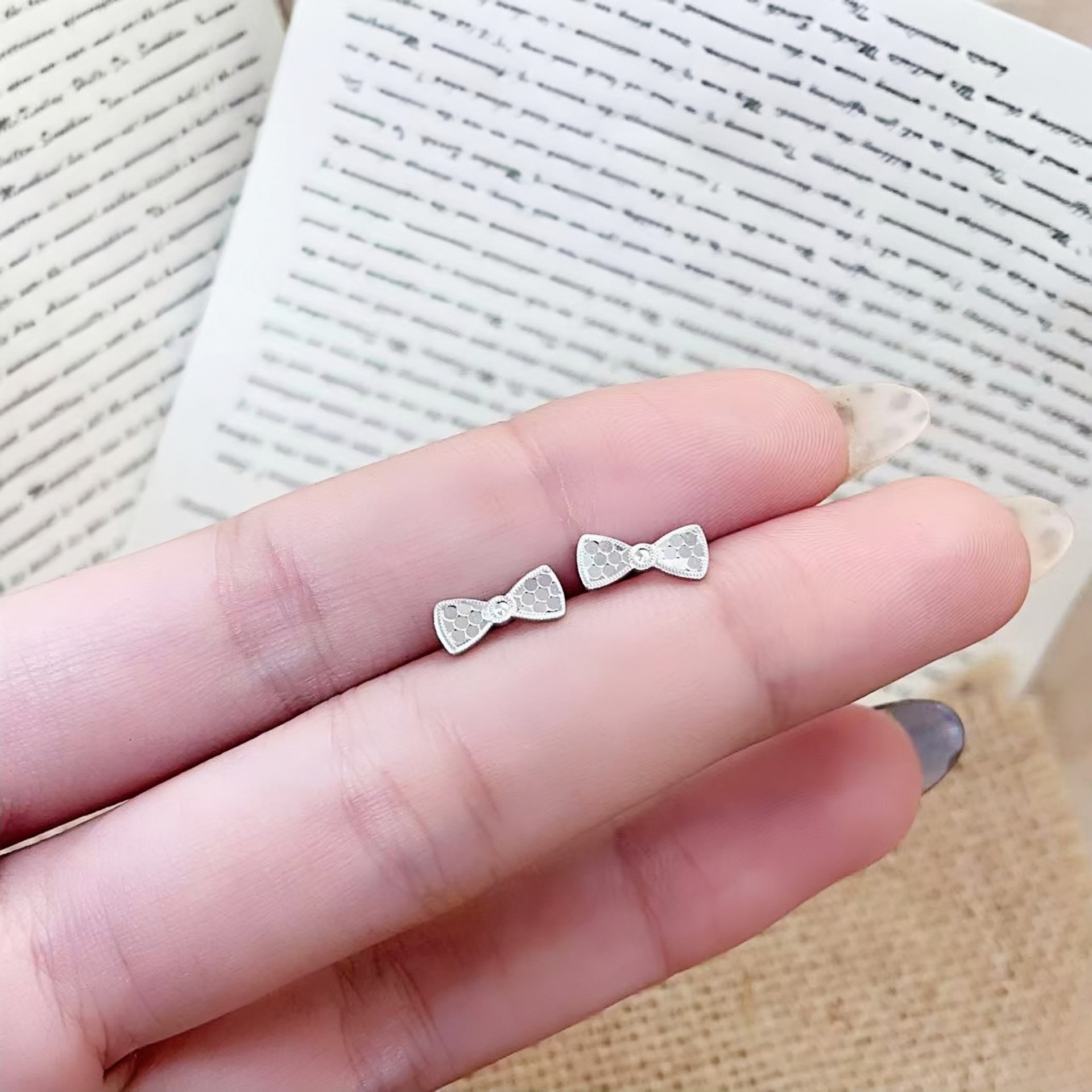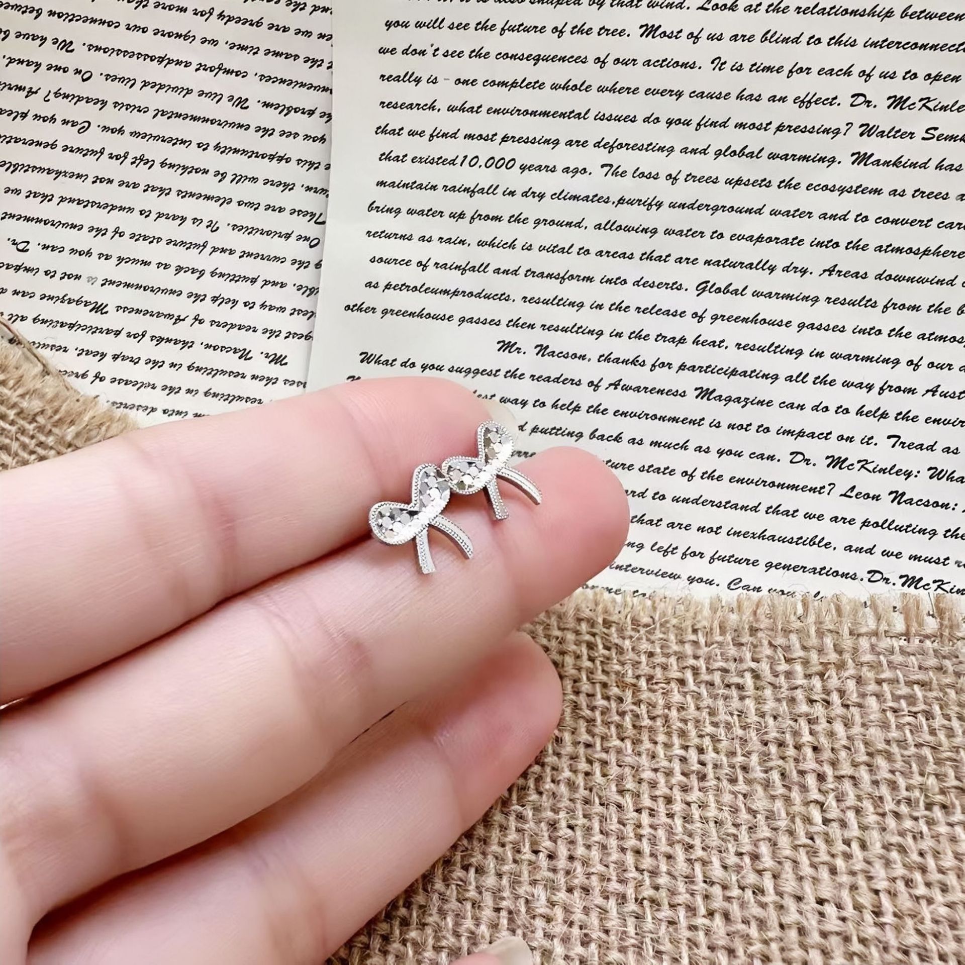 S925纯银碎冰冰蝴蝶结耳钉女个性时尚耳骨钉ins气质耳饰品