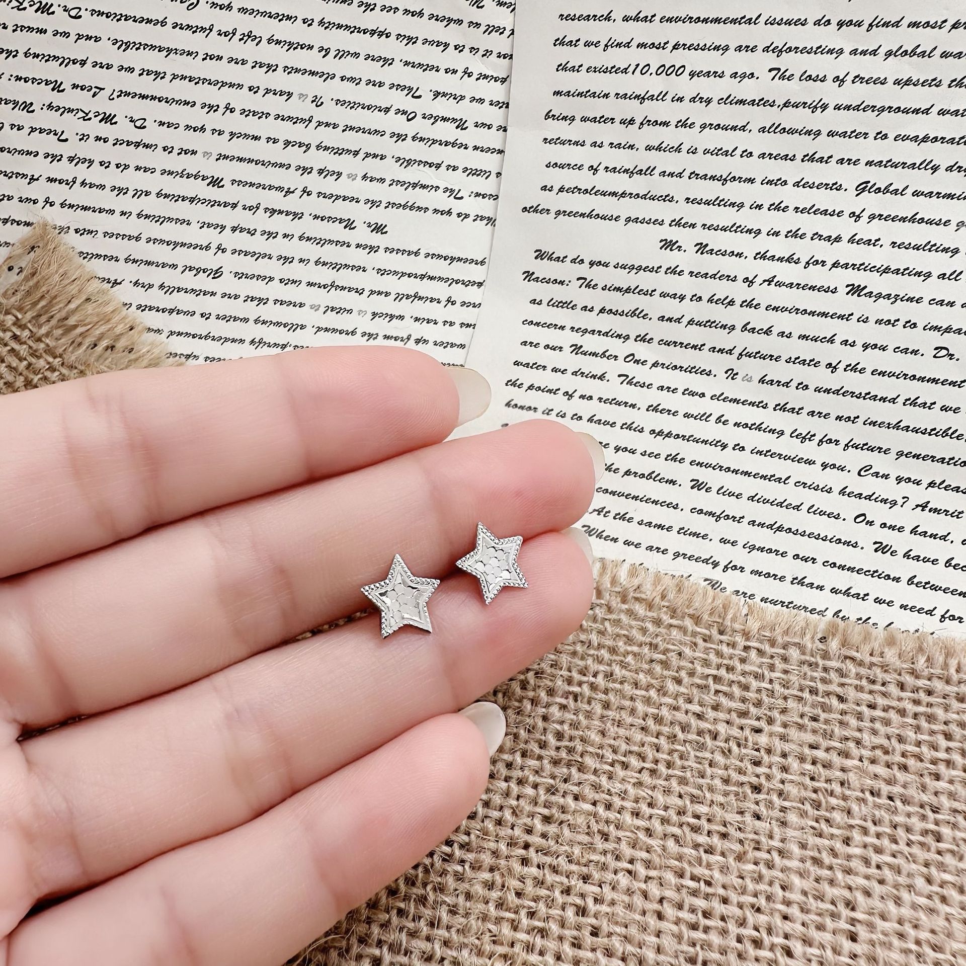 S925纯银碎冰冰星形耳钉女个性时尚耳骨钉ins气质耳饰品