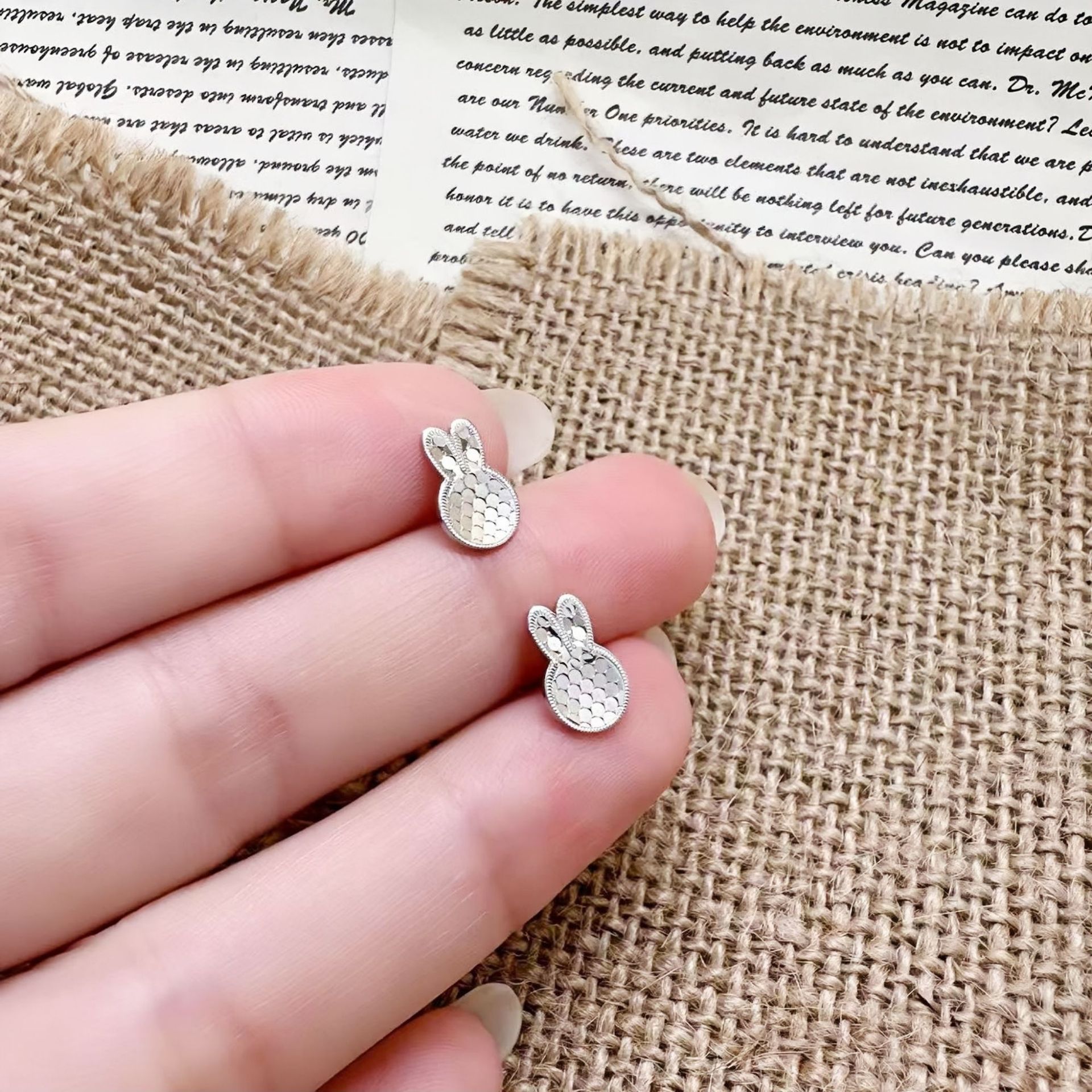 S925纯银碎冰冰兔子形耳钉女个性时尚耳骨钉ins气质耳饰品