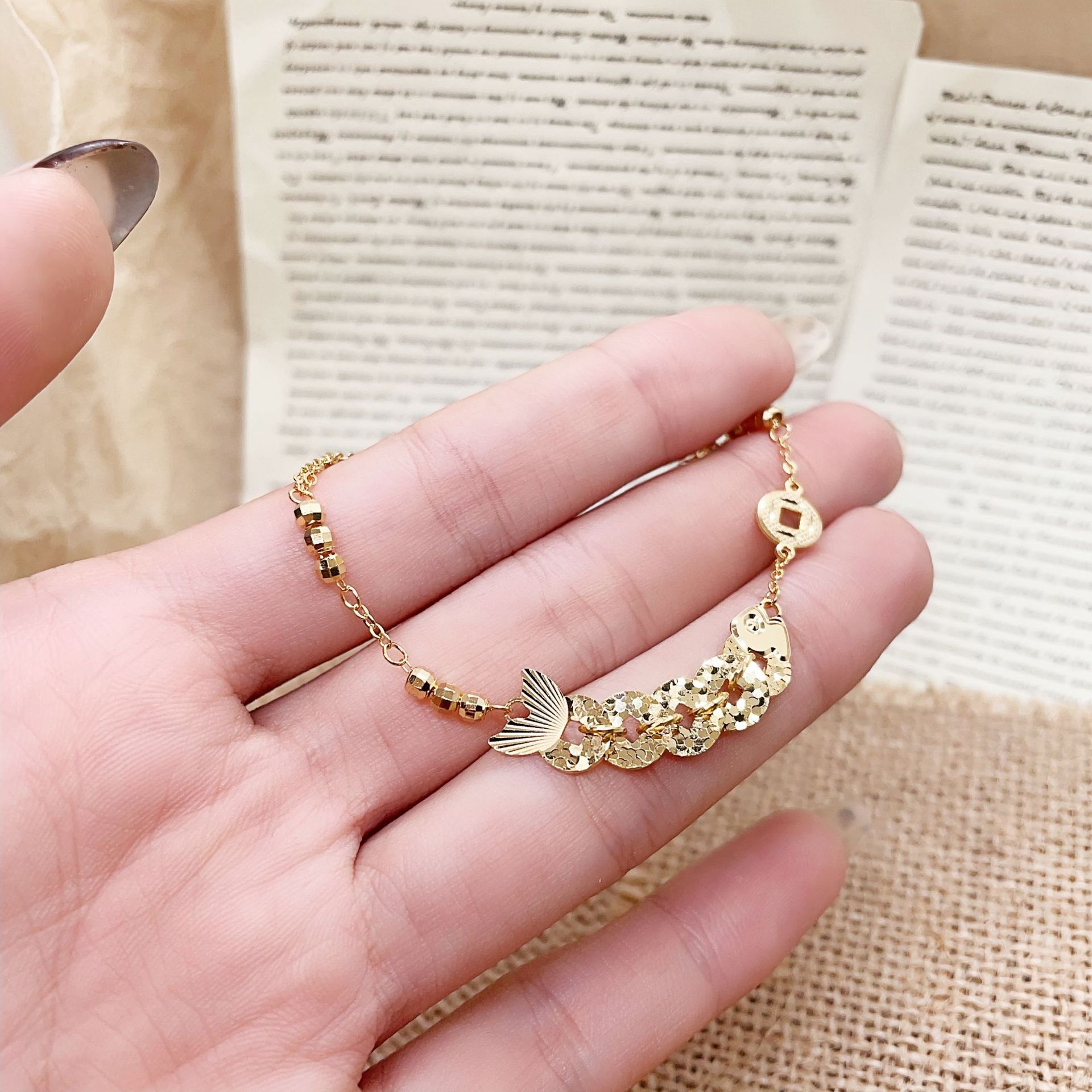 s999纯银碎冰冰金钱币手链碎碎多金手链女国风新中式钱币手串