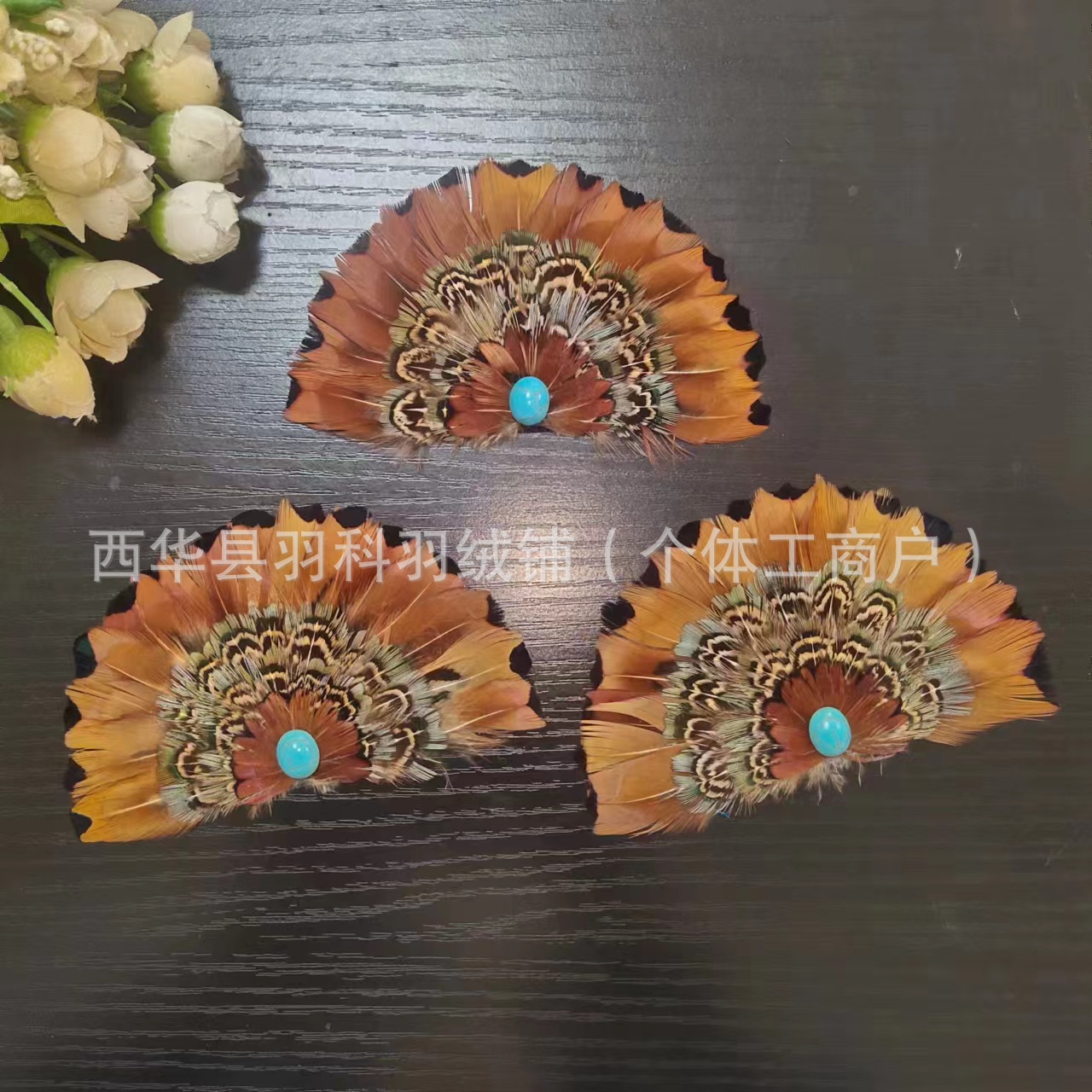 厂家批发亚马逊爆款羽毛饰品 扇形头饰胸针胸花帽花帽子装饰