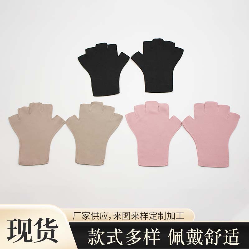 双面绒德绒手套(半指)高颜值时尚高弹户外开车骑车美甲德绒露指