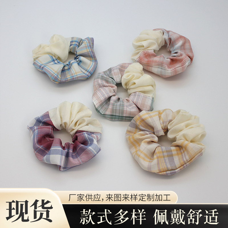 小清新色系格子布双拼发圈气质绑发扎发皮筋发绳头饰时尚发圈发饰