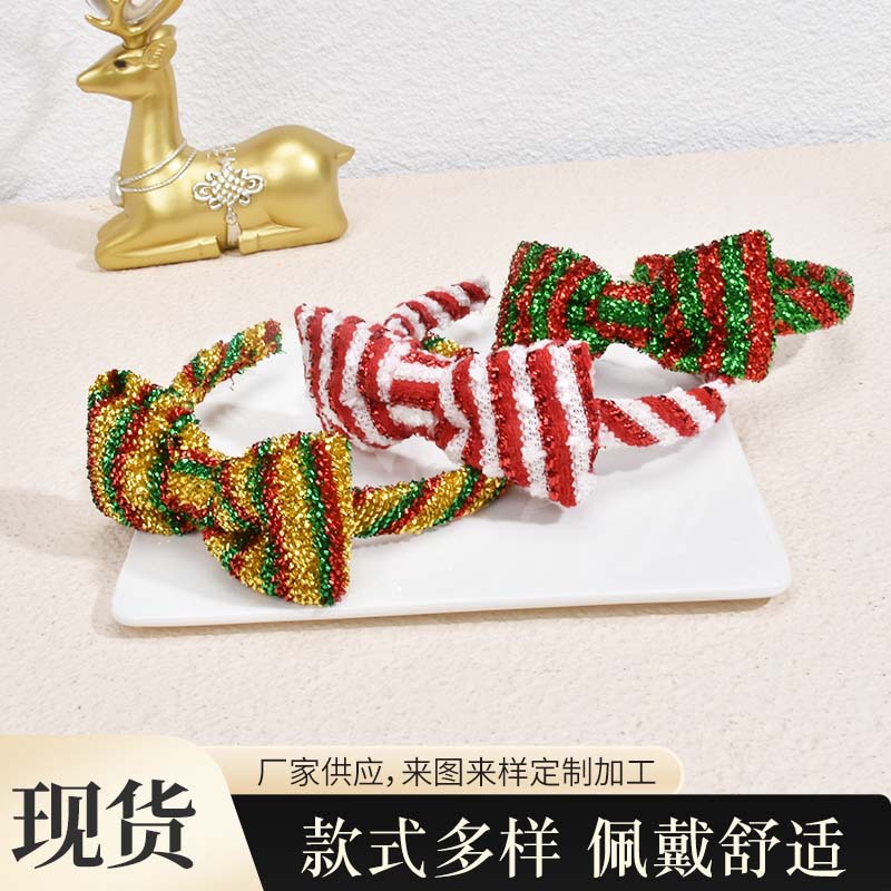 儿童圣诞发箍可爱红白拼色蝴蝶结头饰节日氛围感装饰品毛绒头箍