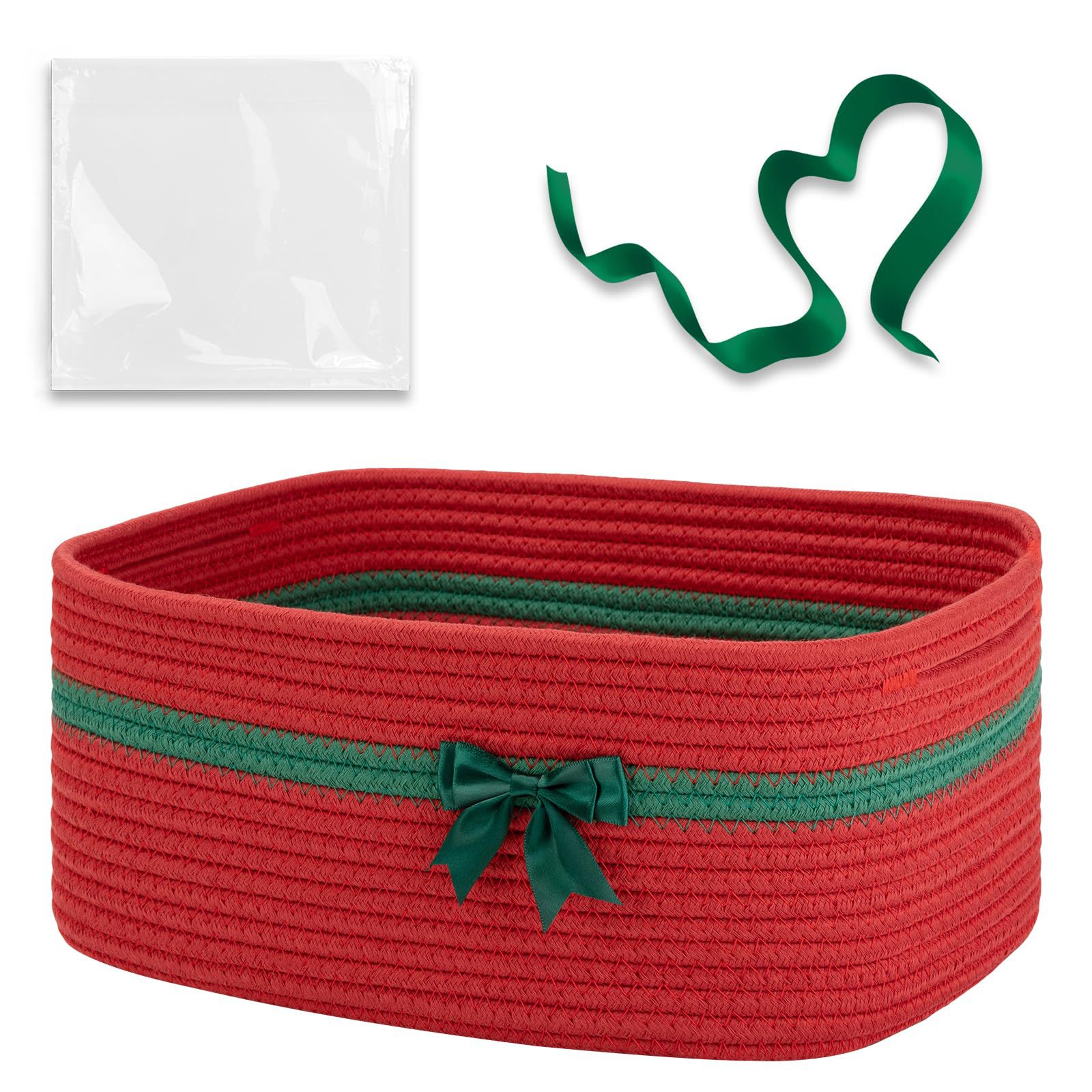跨境圣诞节礼物篮棉绳收纳篮礼品手提糖果筐子圣诞收纳篮礼物篮筐