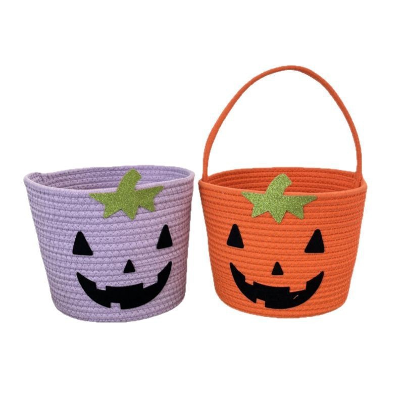 万圣节装饰收纳篮可手提儿童糖果零食棉绳收纳筐万圣节捣蛋储物筐