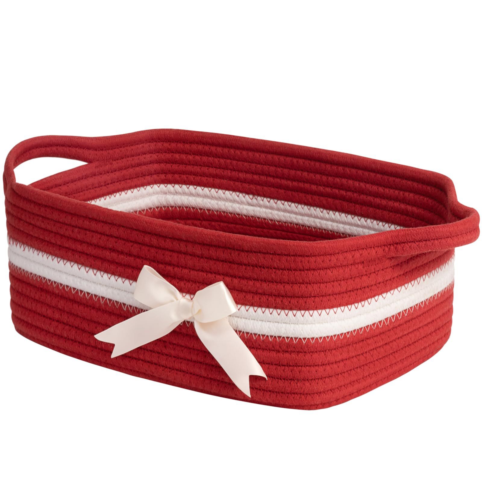 圣诞节棉绳编织篮子整理棉绳筐带手柄可爱篮子礼物篮装饰篮收纳篮