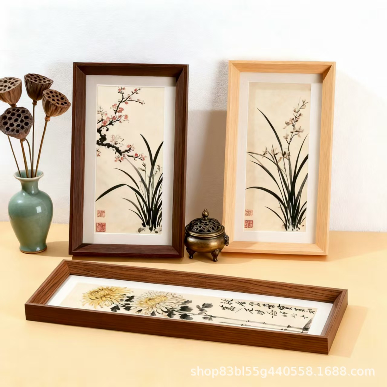 中式花鸟字画相框摆台批发长条画框国画装裱摆台书房茶馆文艺摆件