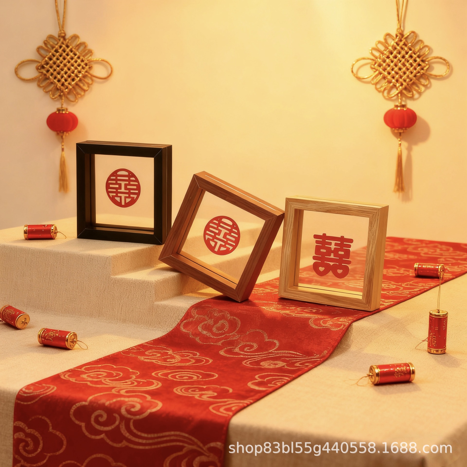 中空喜福婚礼祝福相框摆台5寸6寸7寸画框木质框摆件喜庆装饰摆件