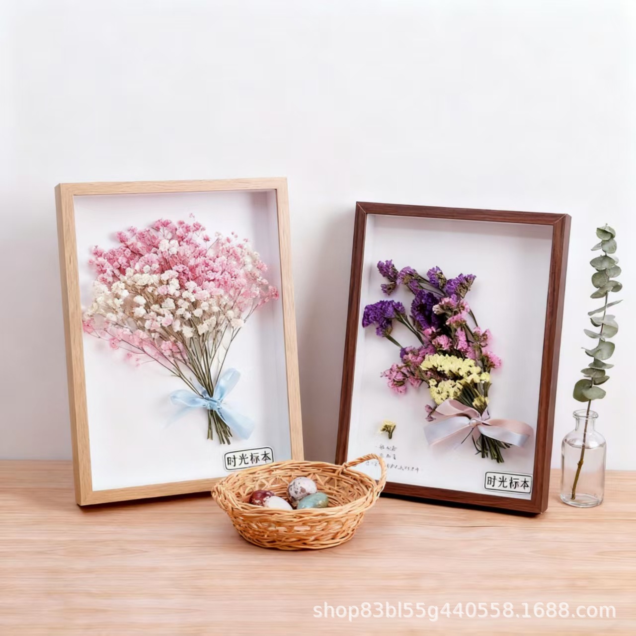 木质中空立体干花相框创意diy框架桌面摆台永生花标本装裱框批发