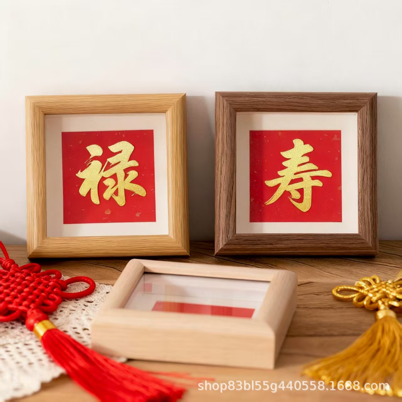 新中式正方形4寸迷你相框祝福喜庆木质相框摆台创意中空桌面摆件