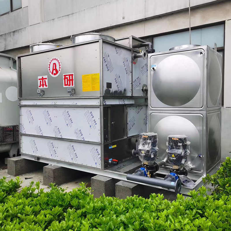 空压机闭式横流冷却水塔 304不锈钢外壳盘管水箱水泵电控价格优惠