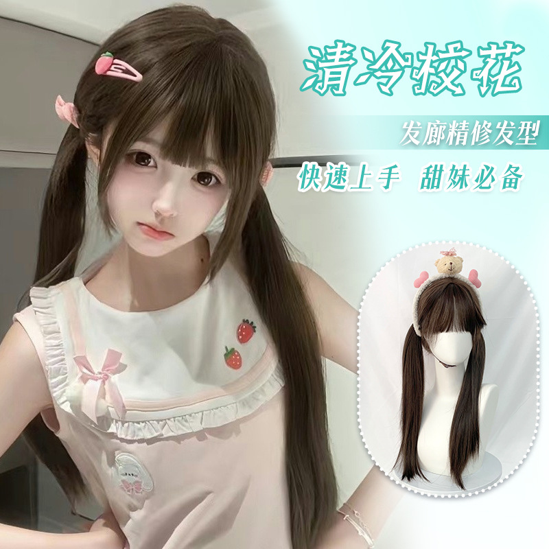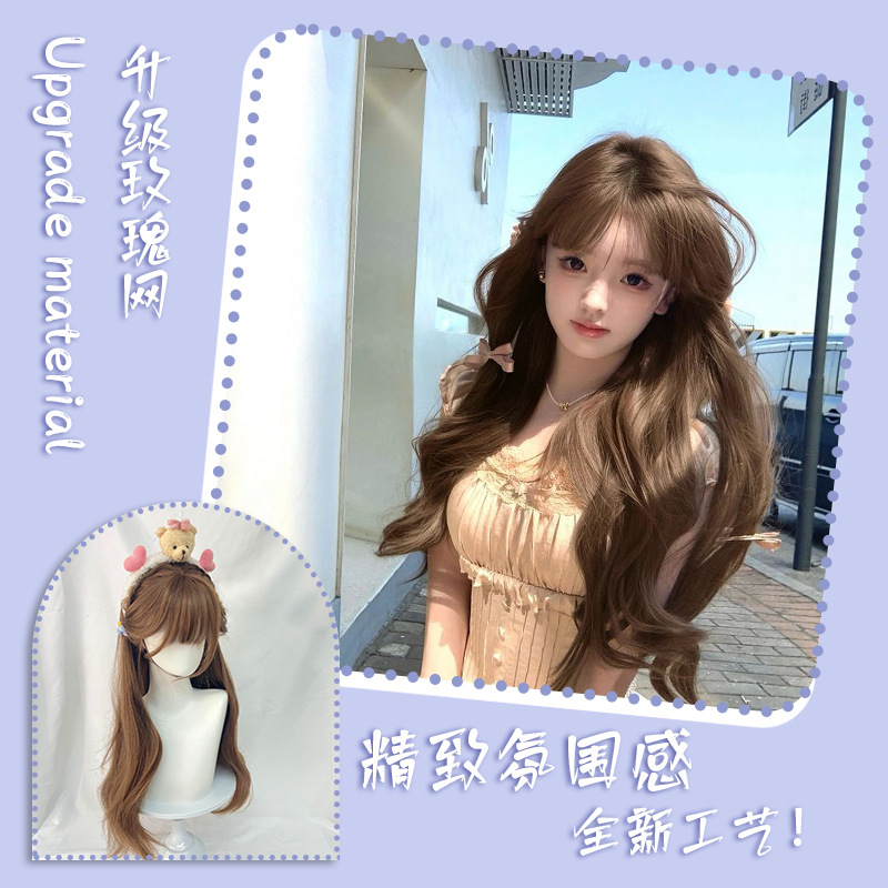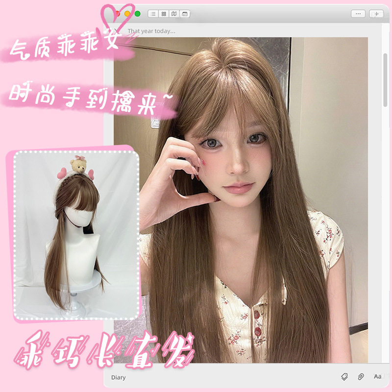高温丝长直发欧美女士制品可爱空气刘海萌妹日系棕色发套有村架纯