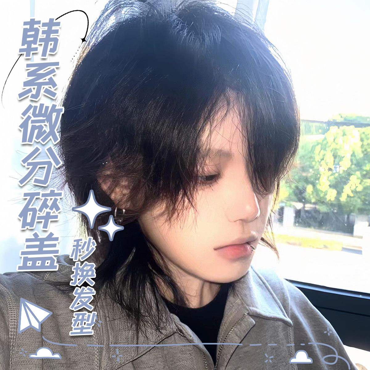 假发cos头套网感微分碎盖蓬松日常自然仿真发丝韩式明星同款假发