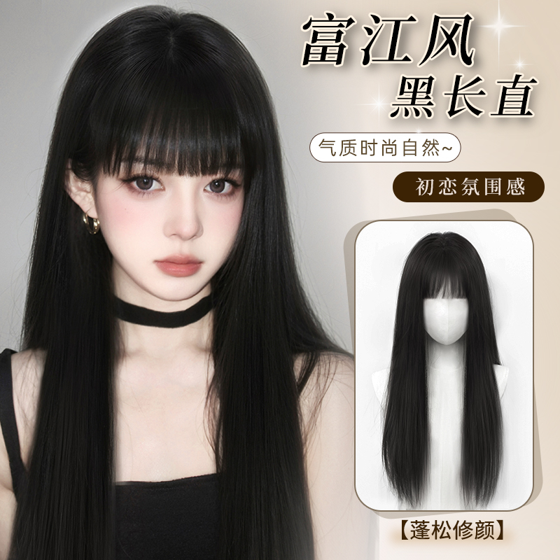 黑长直假发全头套女团齐刘海蓬松自然日常黑色整顶富江漫画假发套