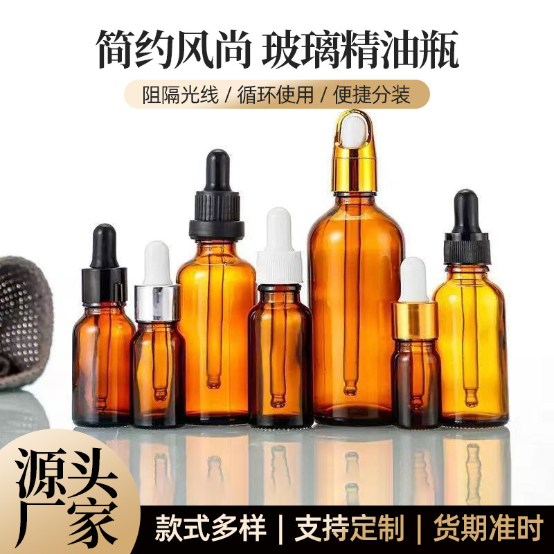 茶色玻璃精油瓶5ml滴管瓶30ml100ml棕色玻璃分装瓶精华纯露化妆品